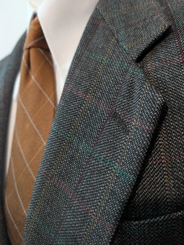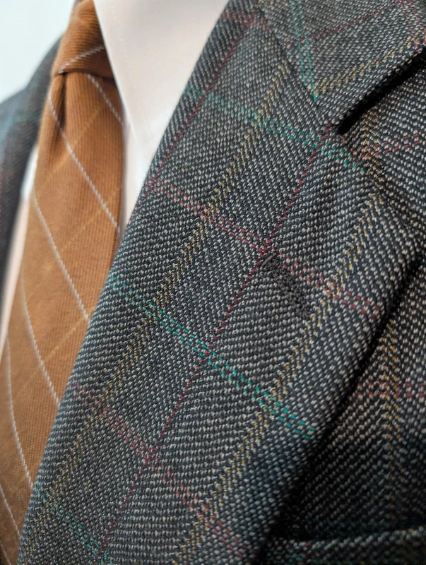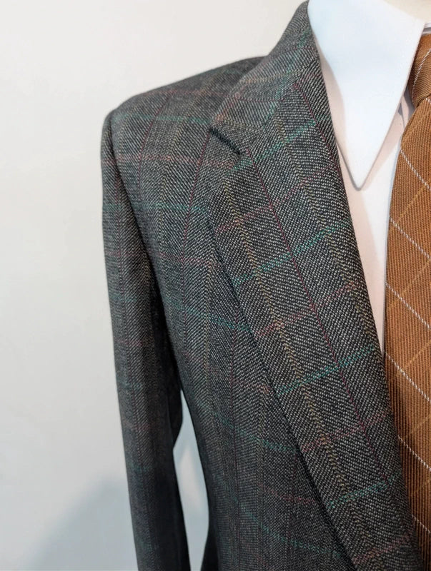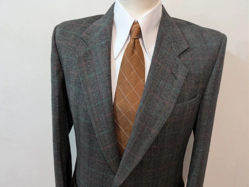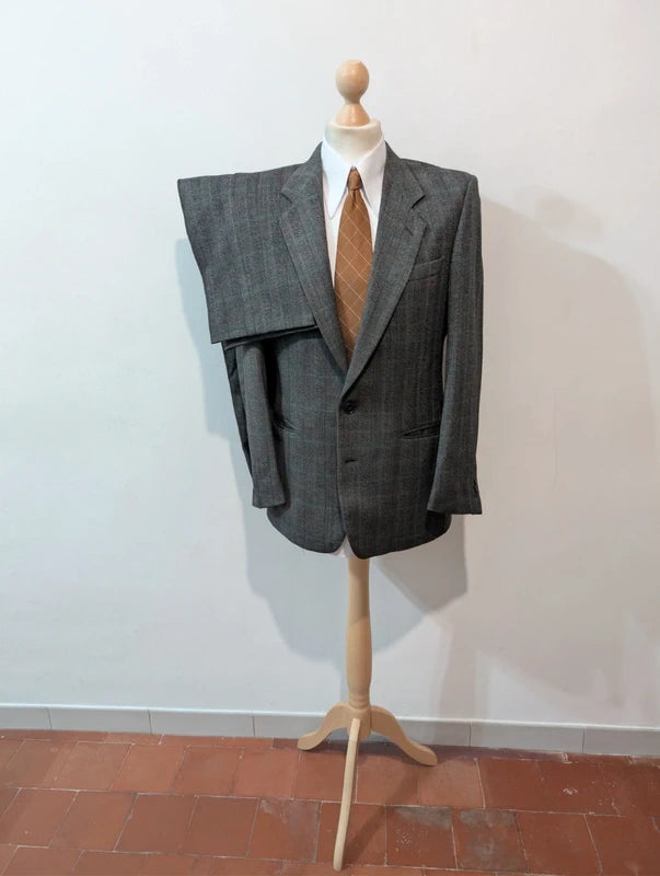 Je vous propose cet ancien costume de couleur gris à motif carreaux en laine.
