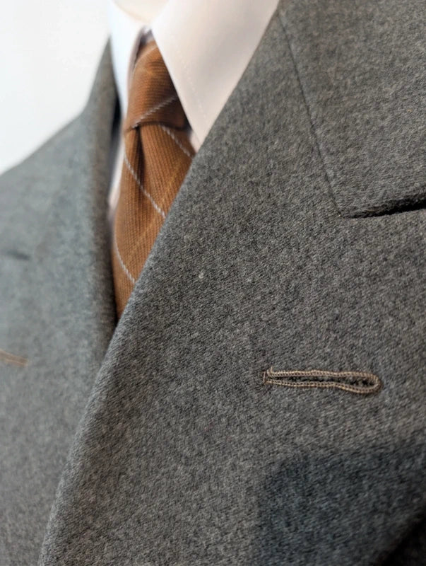 Der Mantel ist ein 4 x 2 zweireihiger Mantel mit wunderschönen spitzen Revers.