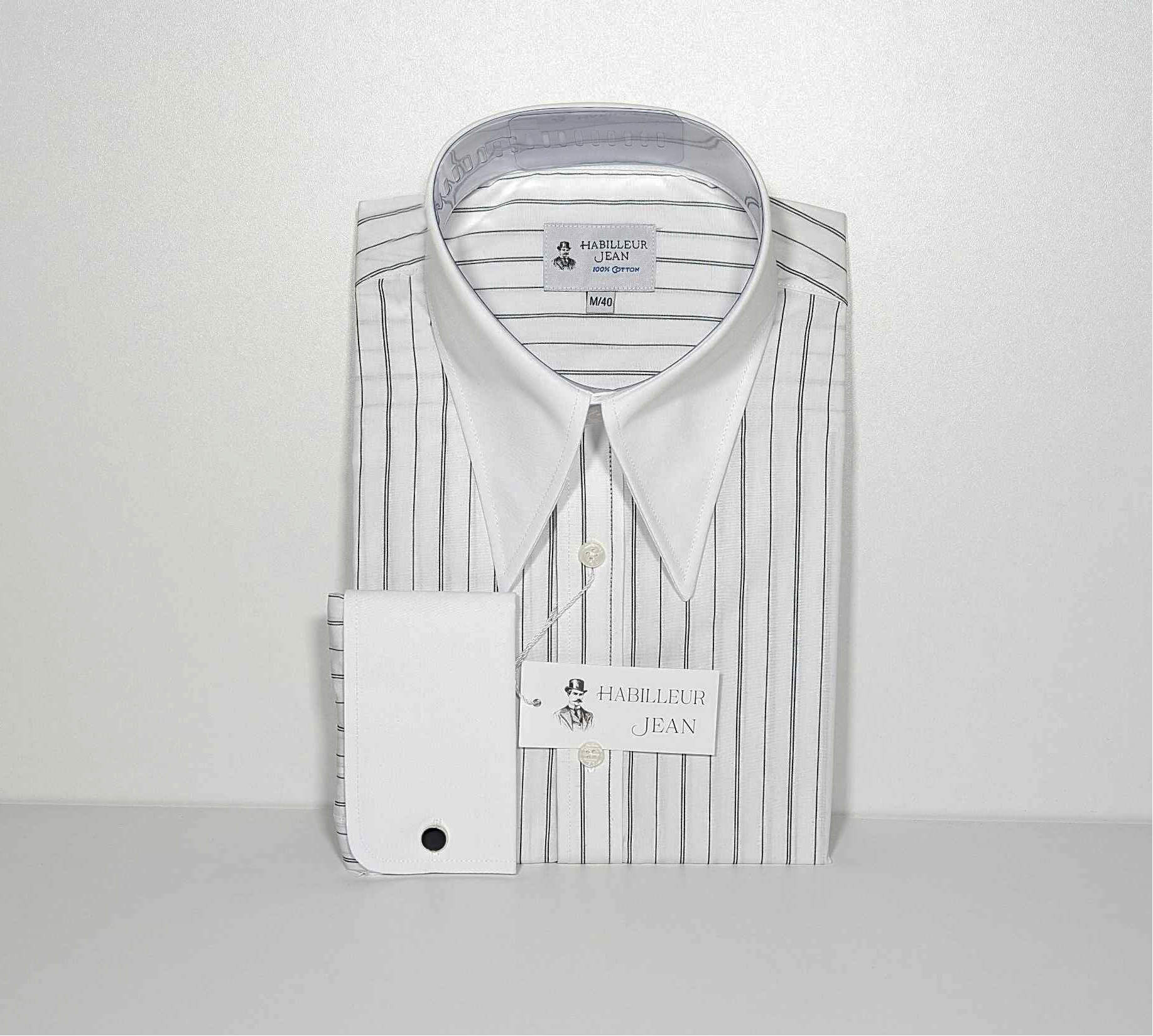 Schwarz gestreiftes Hemd mit spitzem Kragen aus 100 % Baumwolle
