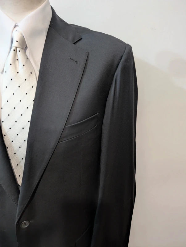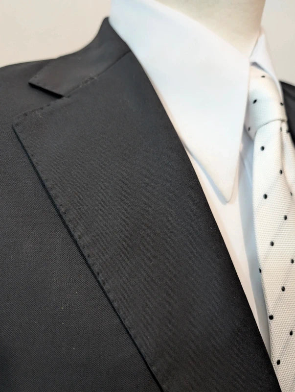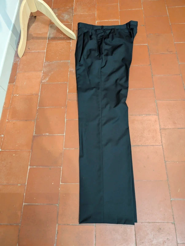 Ich schlage diesen klassischen marineblauen Wollanzug vor.