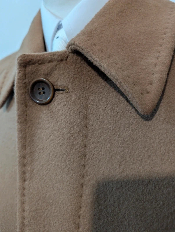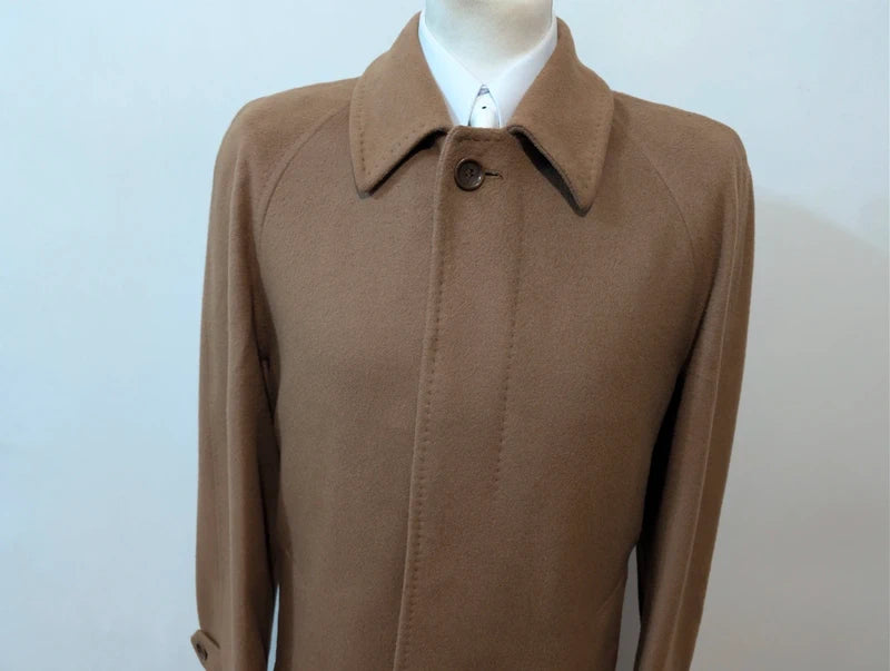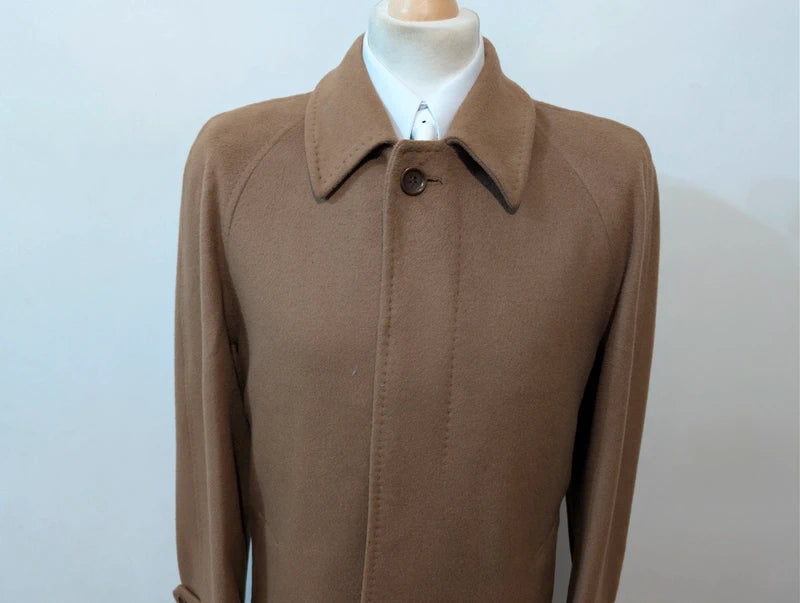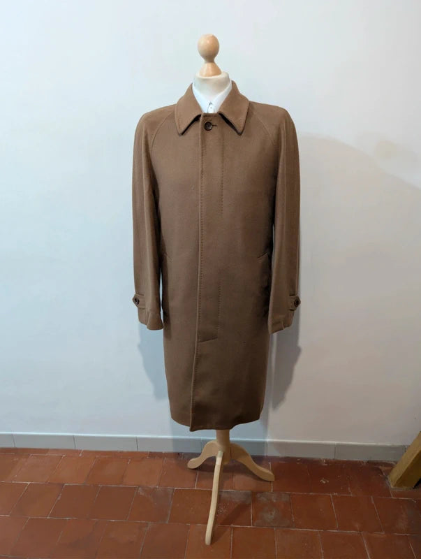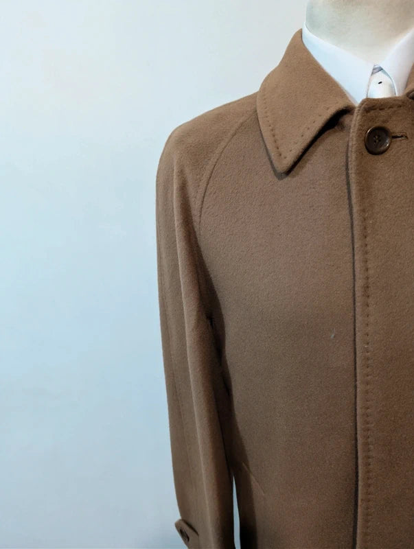 Ich biete Ihnen diesen eleganten braunen Raglanmantel aus Wolle und Kaschmir an.