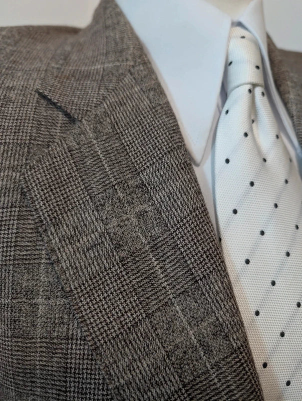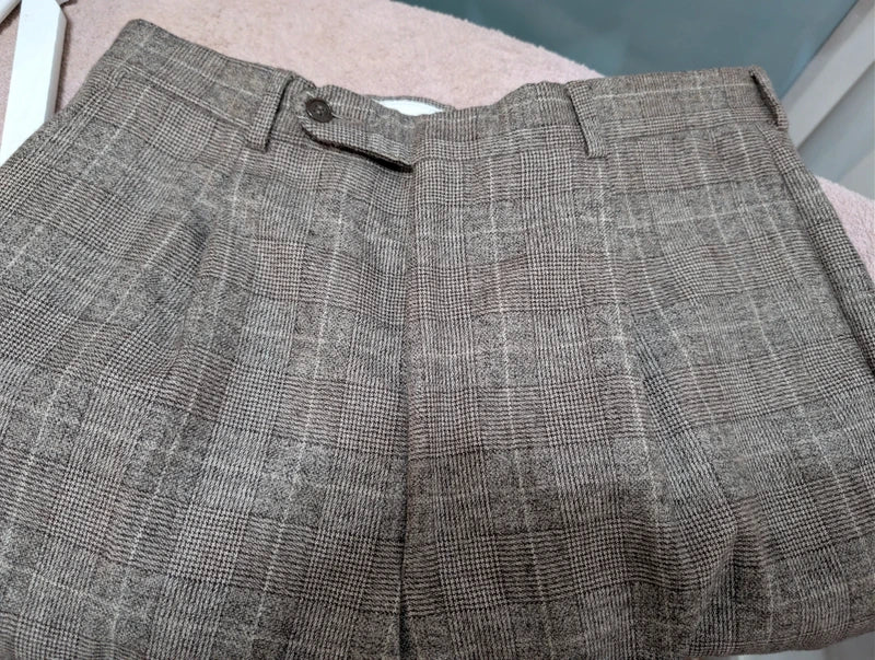 Ich biete Ihnen diesen hervorragenden braunen Karoanzug aus schwerem Flanell an.