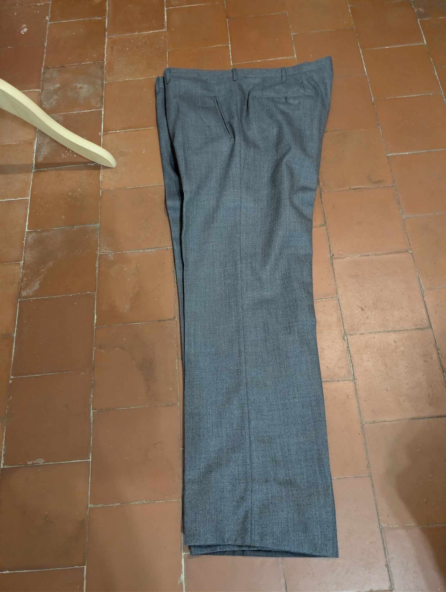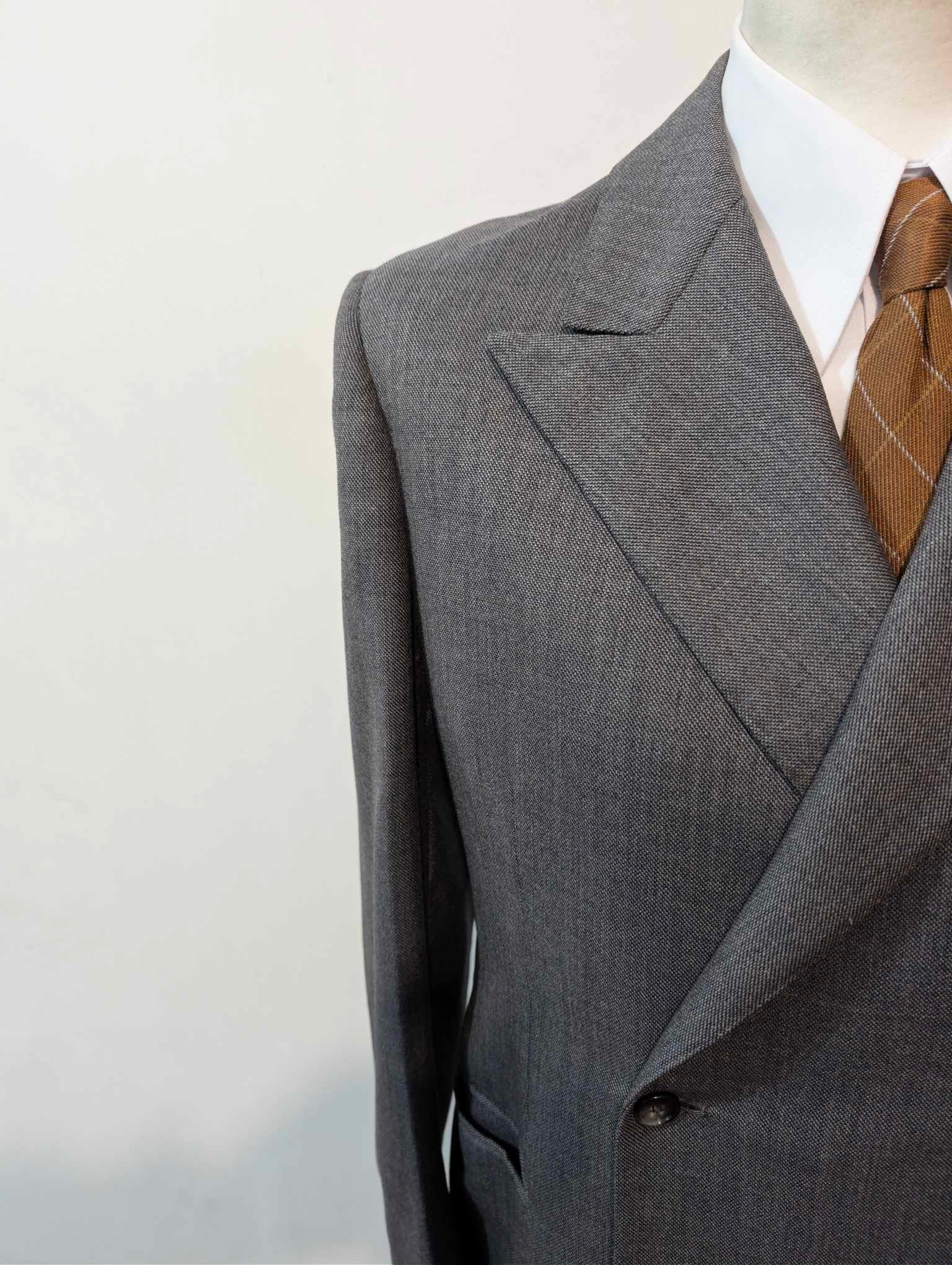 Ich biete Ihnen diesen außergewöhnlichen zweireihigen Anzug aus dicker, grauer Wolle an.