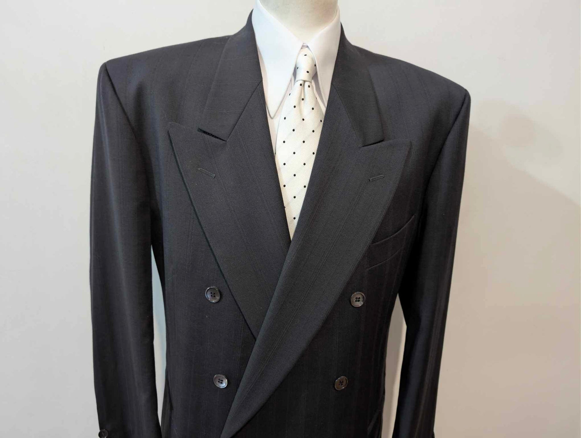 La veste est une veste croisée 6 x 1 avec de magnifiques revers en pointe