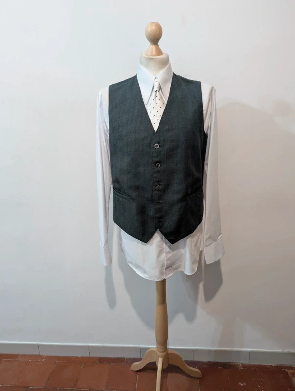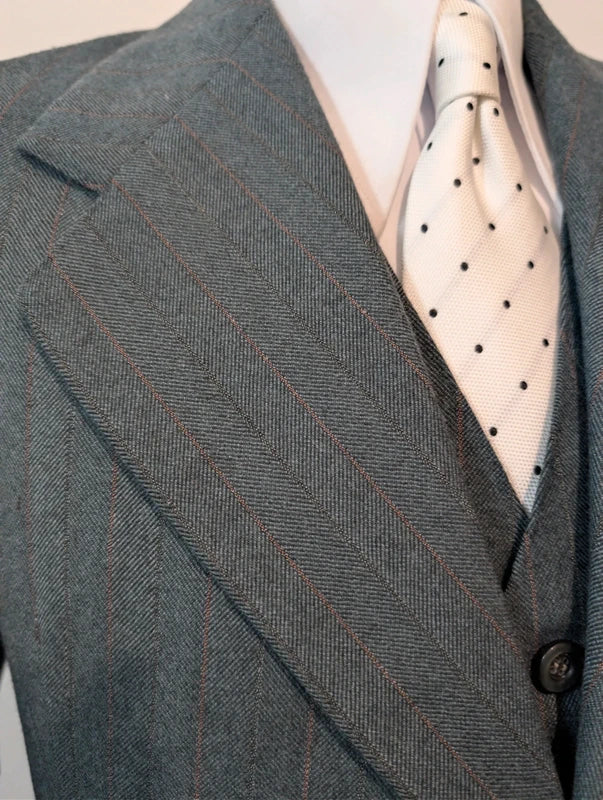 Je vous propose ce fabuleux costumes 3 pièces de couleur vert à rayures en laine épaisse.