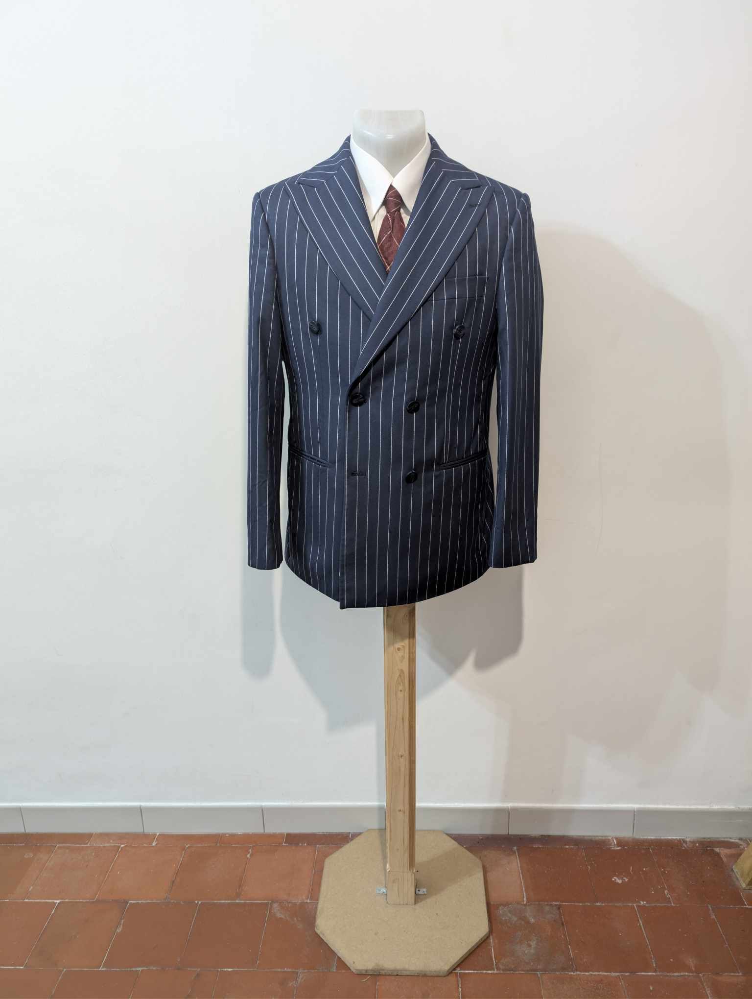 Es handelt sich um eine 6 x 2 doppelreihige Jacke mit schönem Spitzrevers.