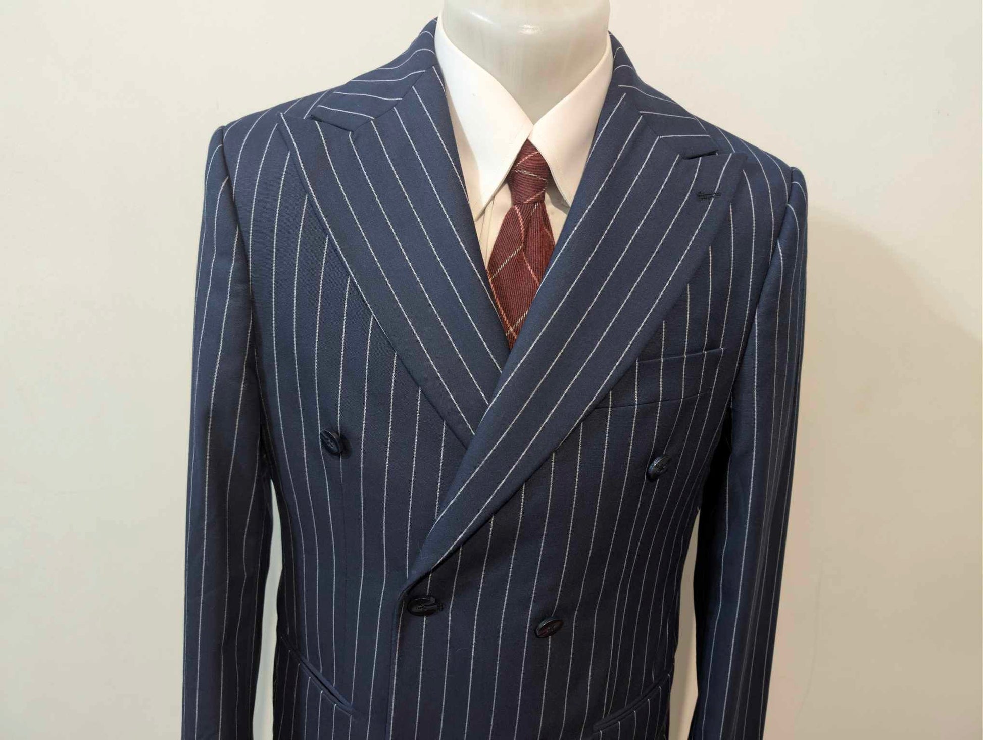 Fabelhafter zweireihiger Nadelstreifenanzug aus Wolle
