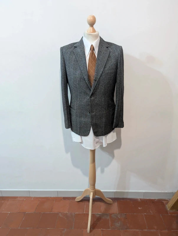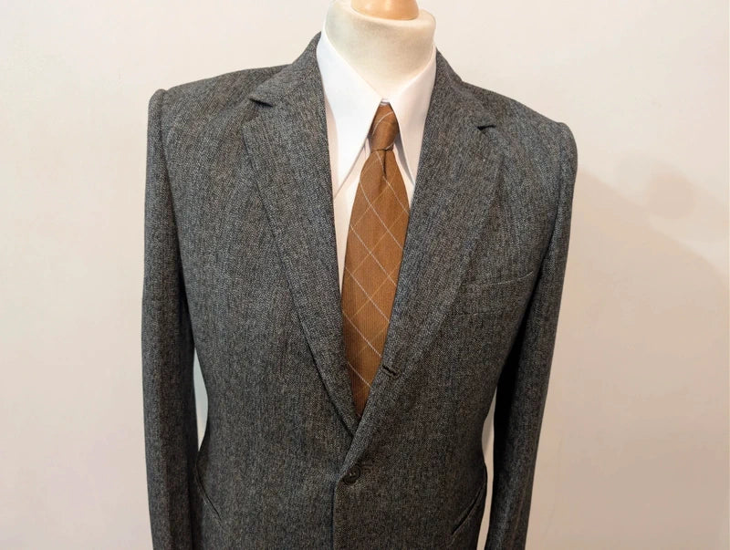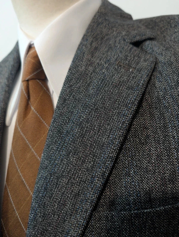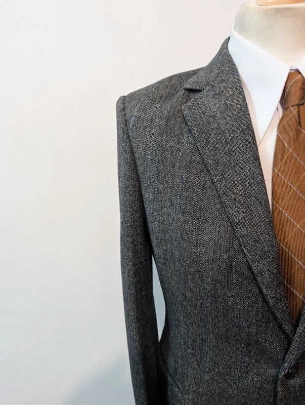 Es handelt sich um ein 2,5-Knopf-Sakko mit wunderschönen, spitz zulaufenden Revers.