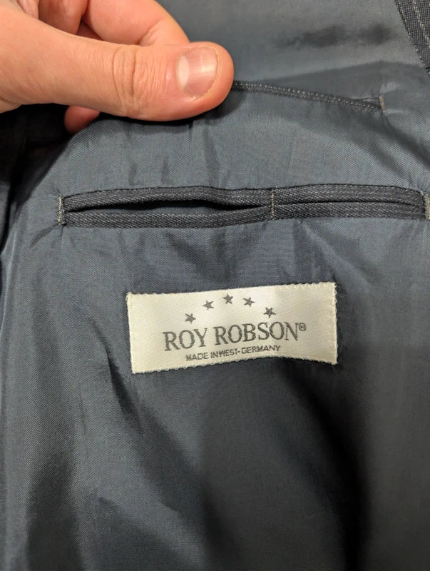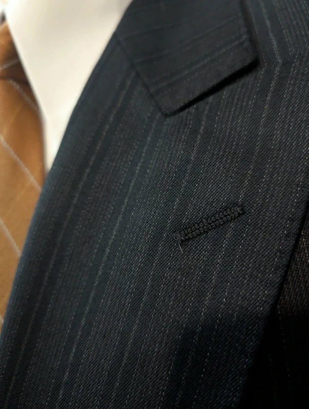 Je vous propose ce génial. Costume croisé de couleur bleu marine à rayures en laine