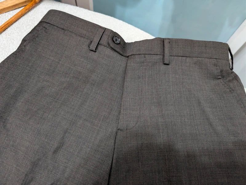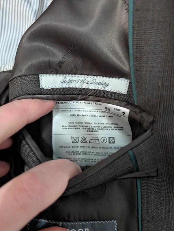 Gehen Sie davon aus, dass Sie die Jacke anpassen müssen (Achsel-, Taillen- und Hüftweite verringern) und die Hosengröße verkleinern müssen.