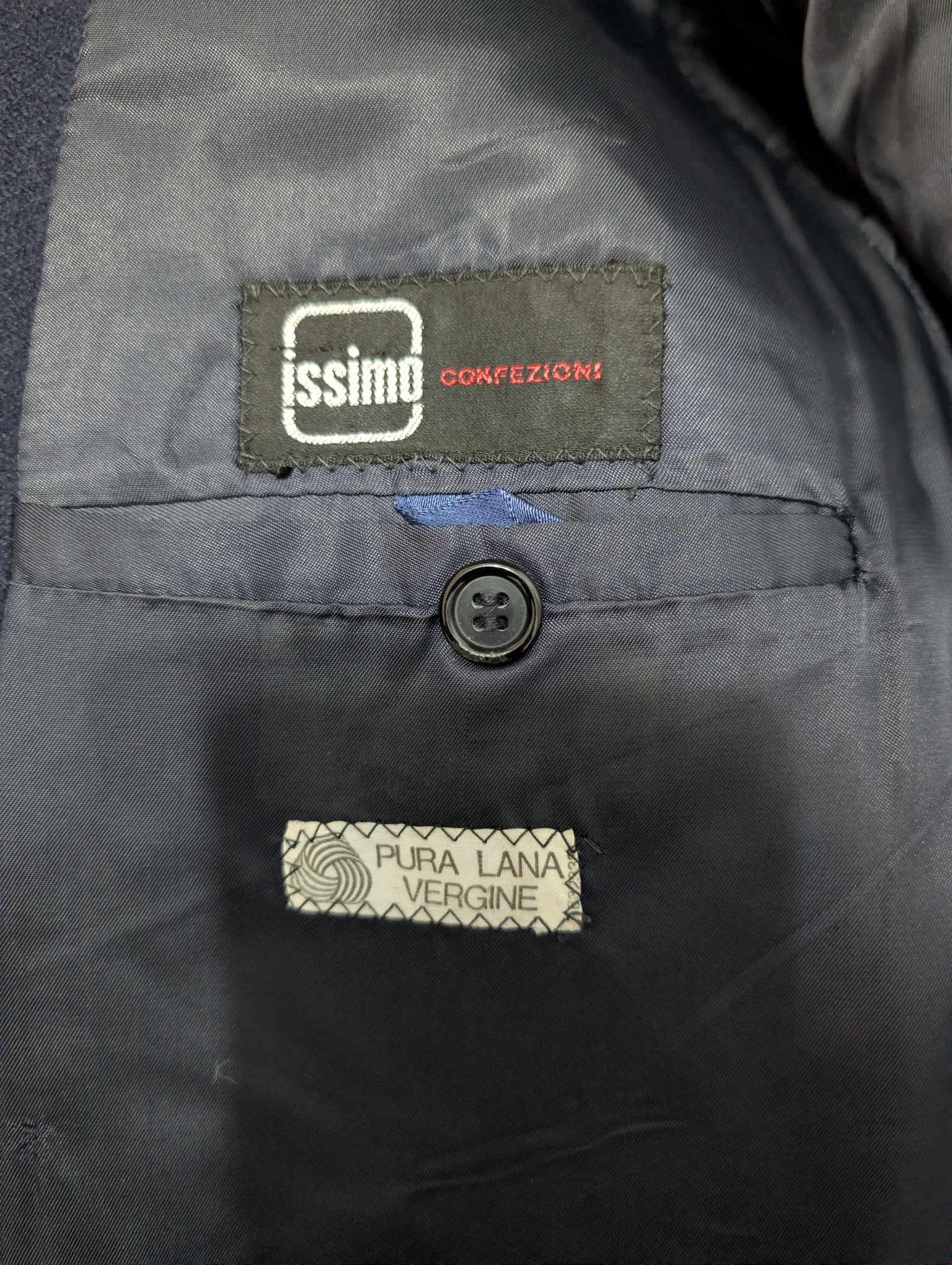 Ich biete Ihnen diesen fantastischen zweireihigen Mantel aus marineblauer Wolle an.