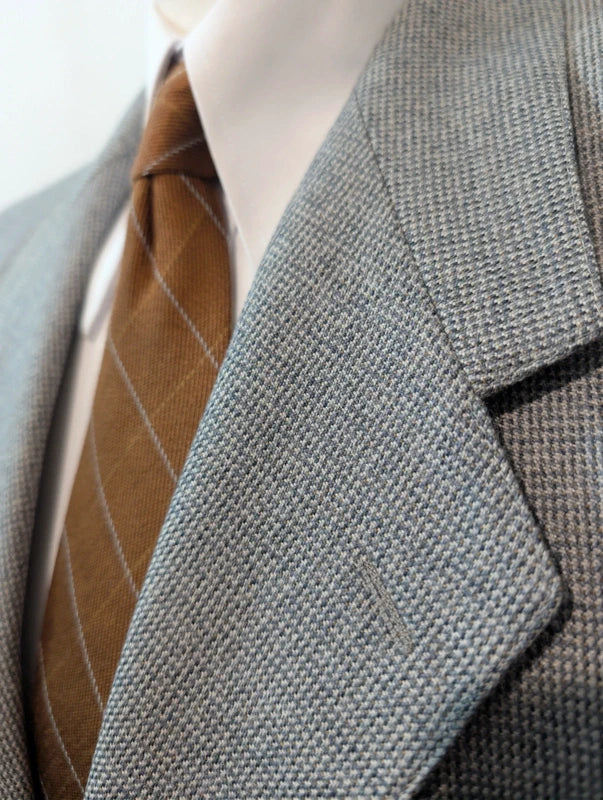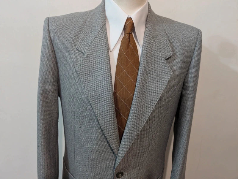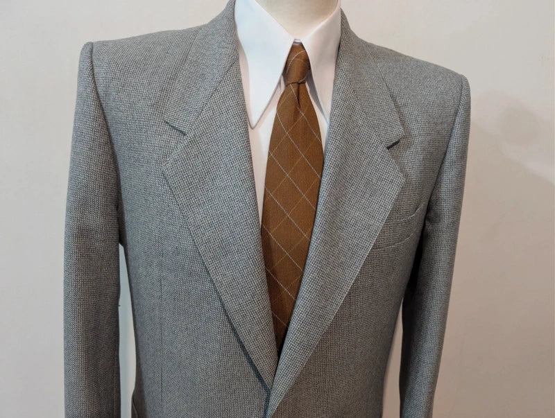 Ich schlage diesen schönen melierten grauen Wollanzug vor.