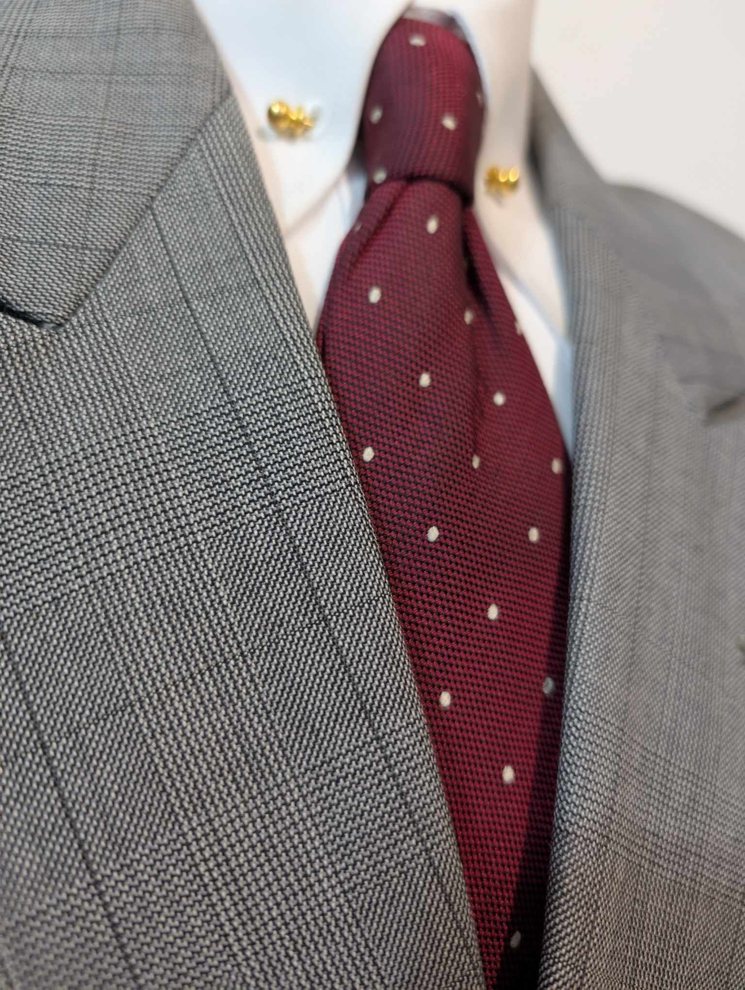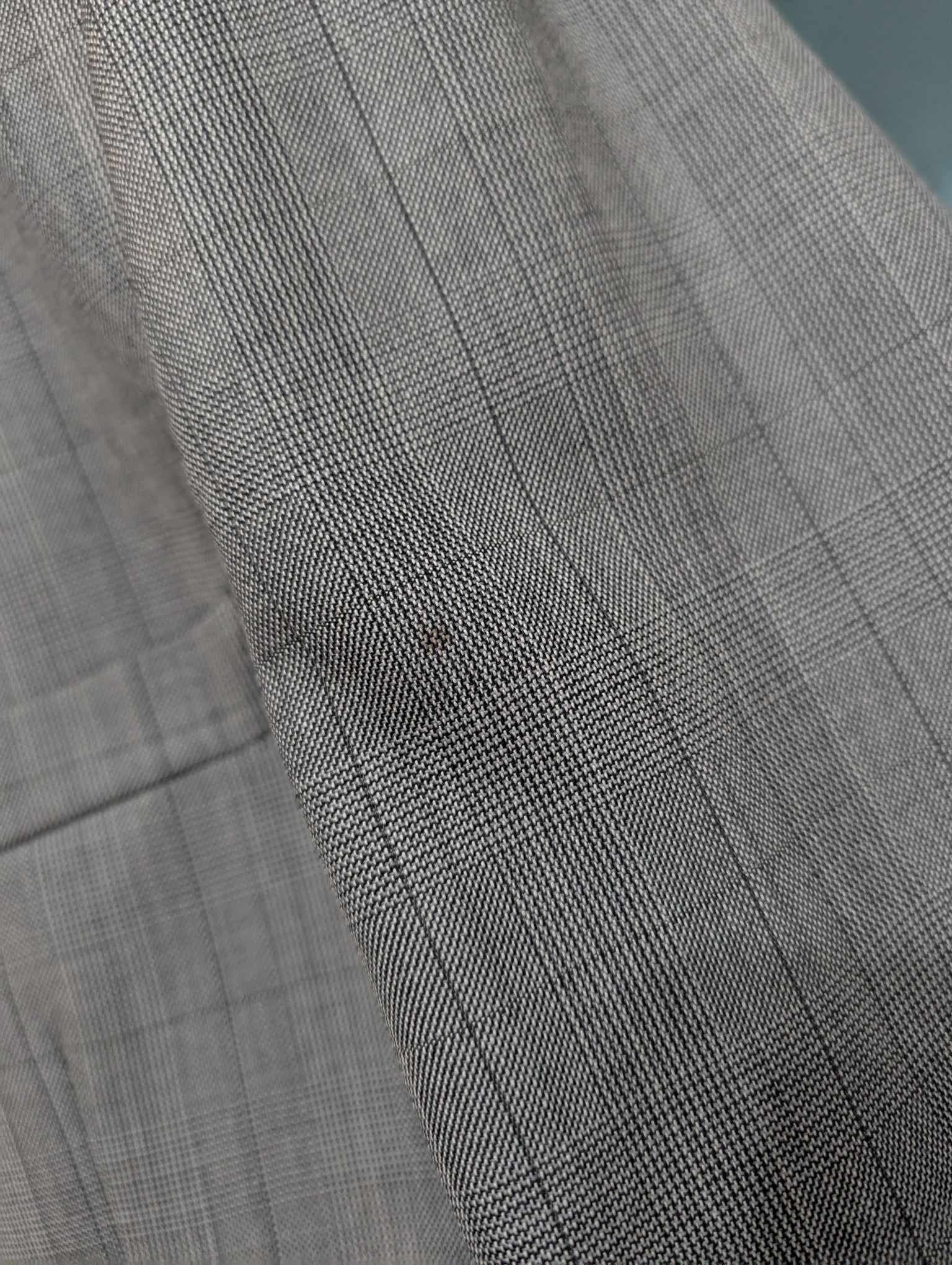 Je vous présente cet impressionnant costume croisé de couleurs gris à motif carreaux en laine.