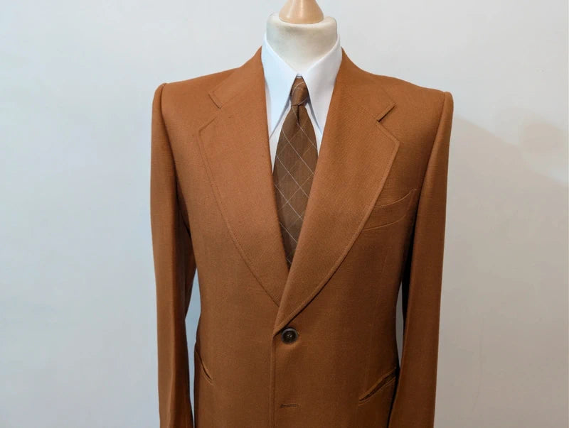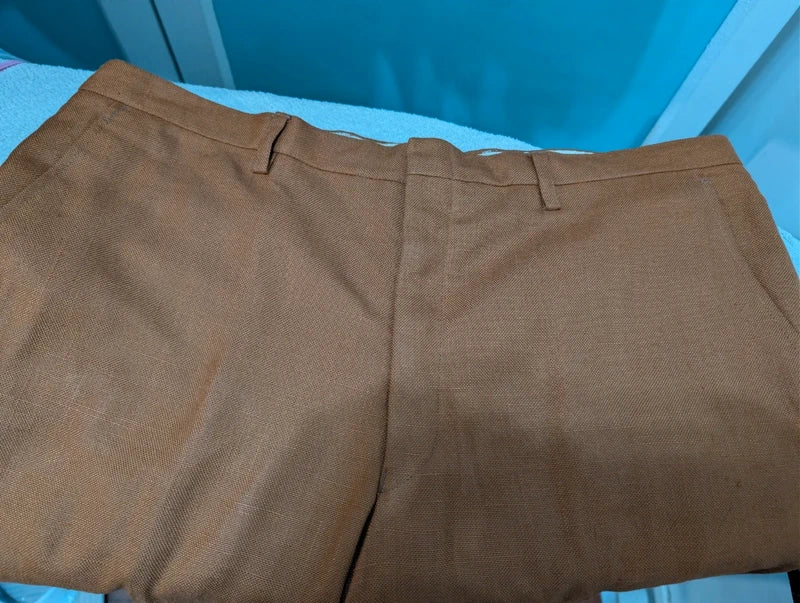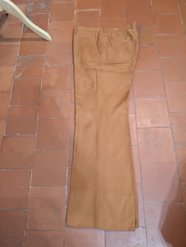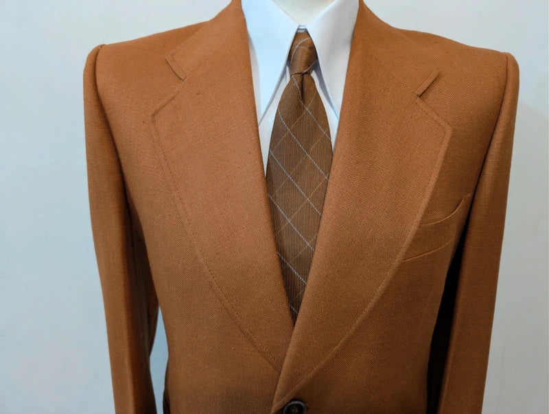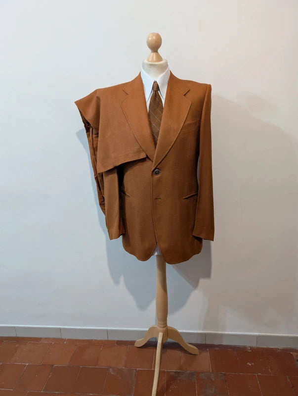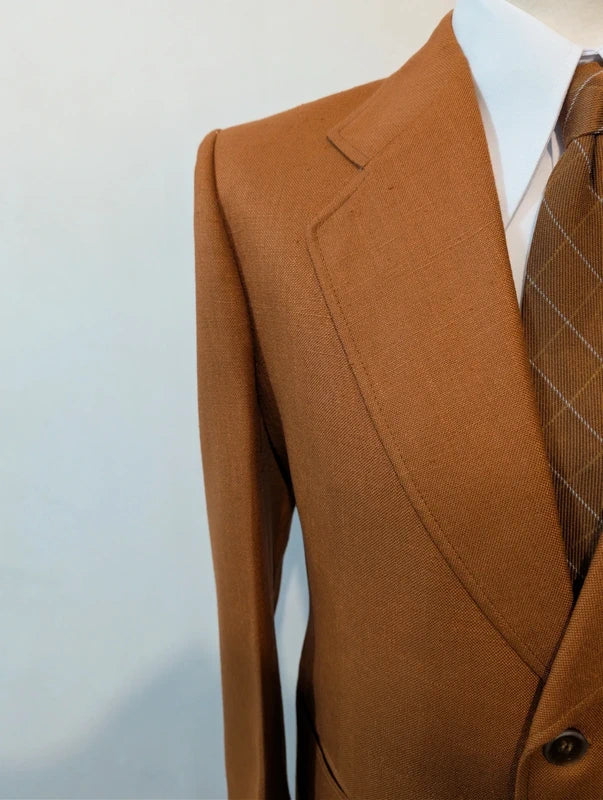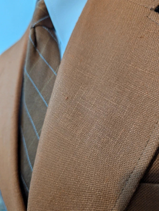 Ich biete Ihnen diesen unglaublichen rostbraunen Leinenanzug an.