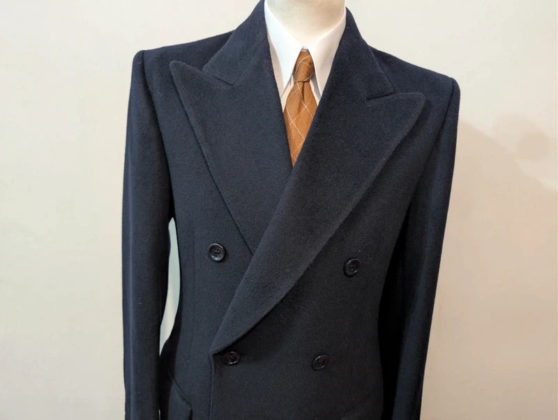Unglaublicher marineblauer Zweireihermantel aus Wolle