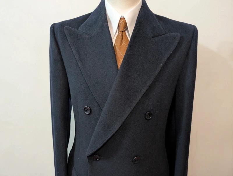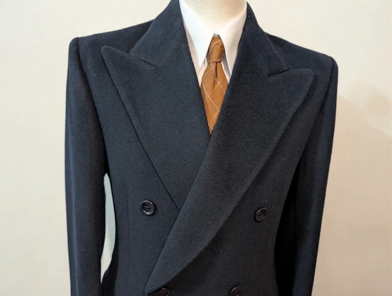 Der Mantel ist ein 6 x 2 zweireihiger Mantel mit wunderschönen spitzen Revers.