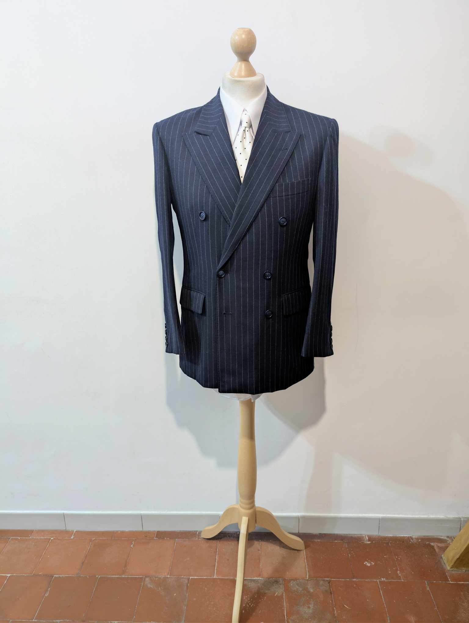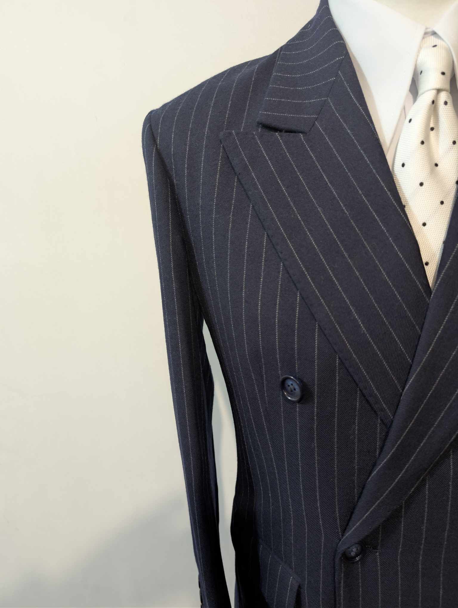 Es handelt sich um eine 6 x 2 doppelreihige Jacke mit schönem Spitzrevers.