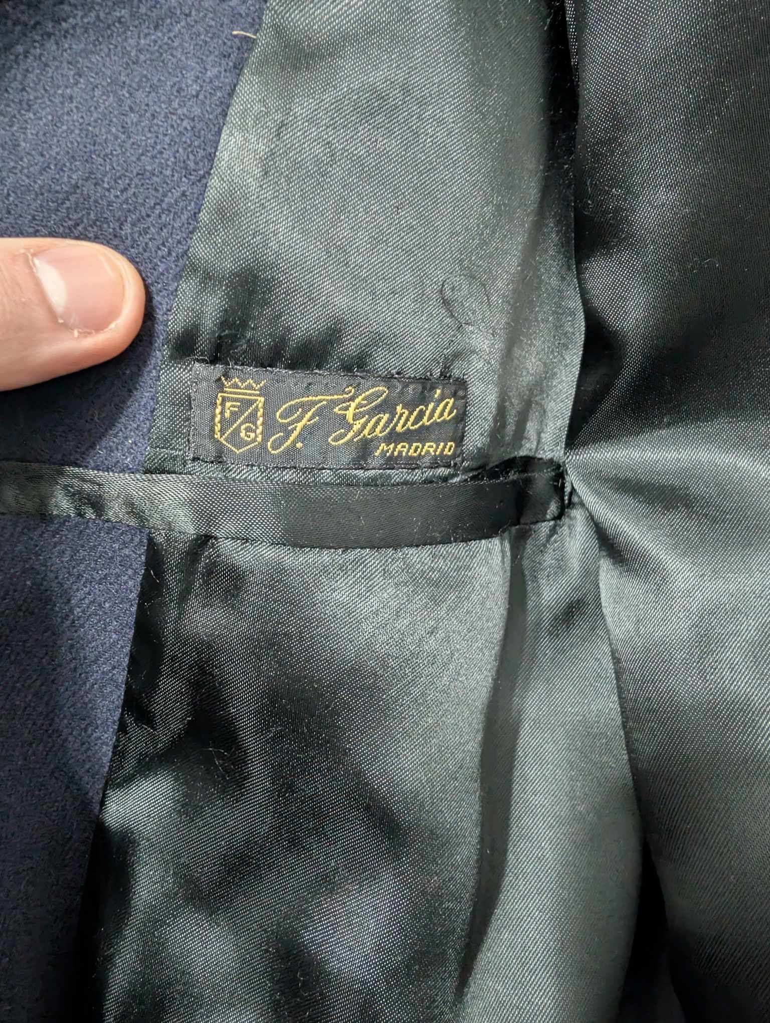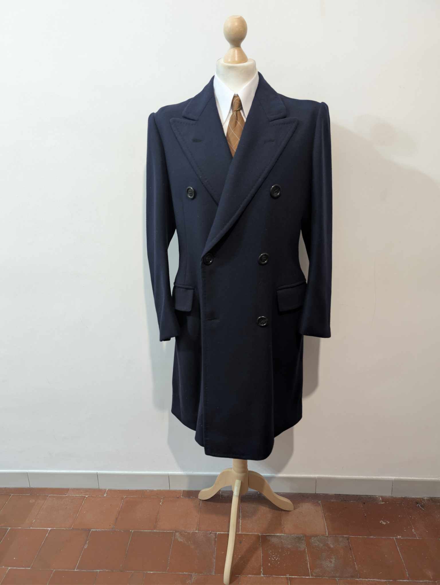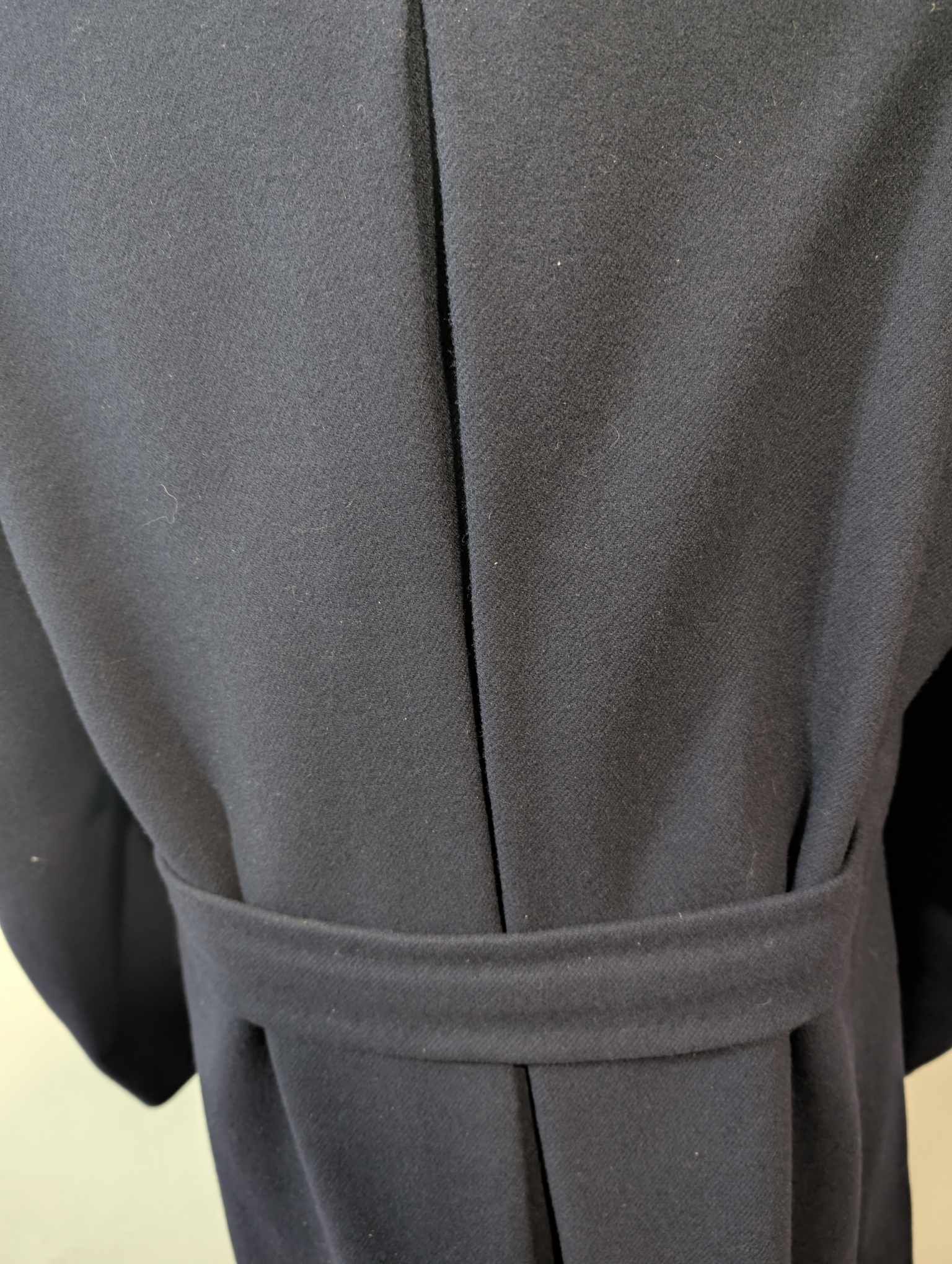 Ich biete Ihnen diesen legendären marineblauen, zweireihigen Wollmantel an.