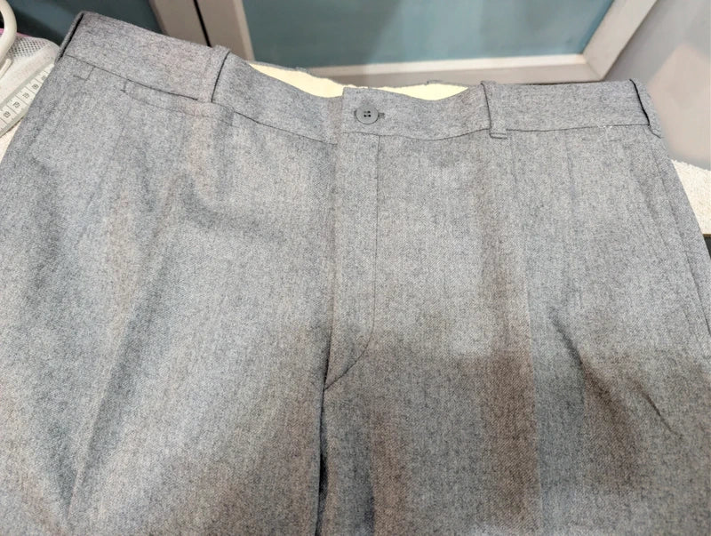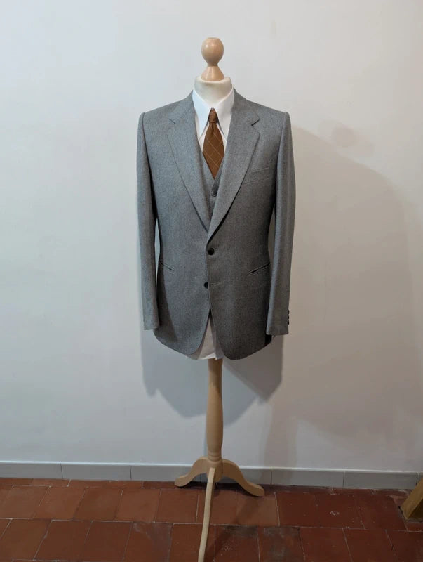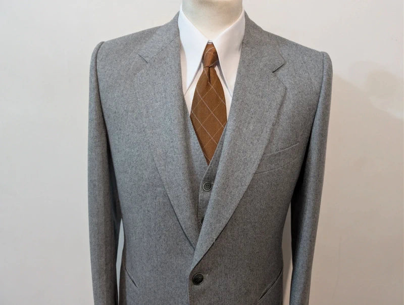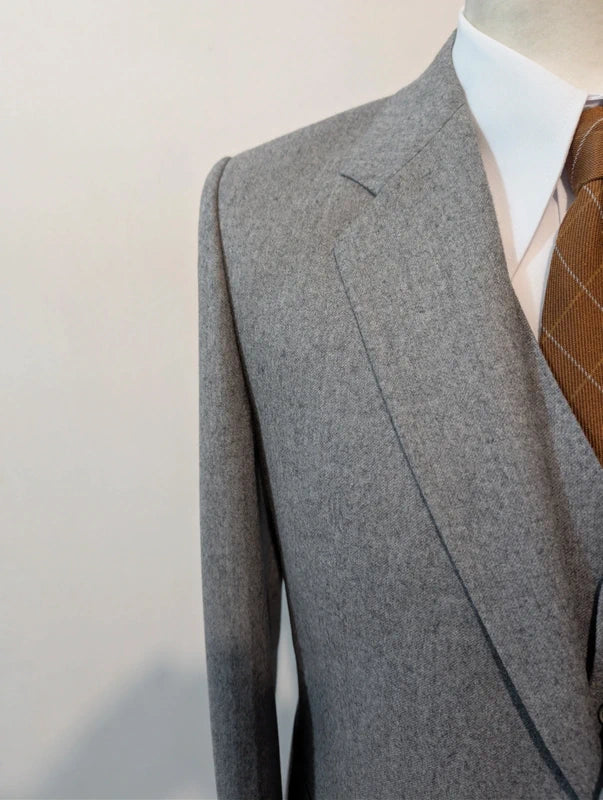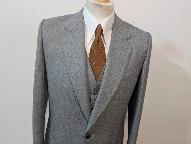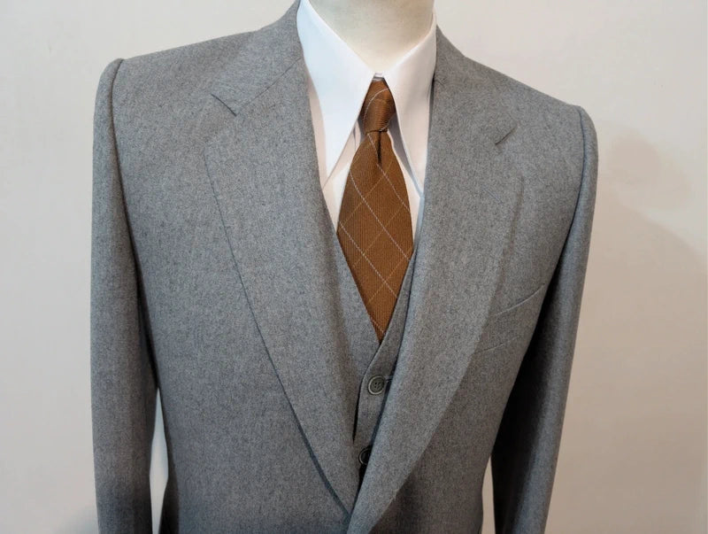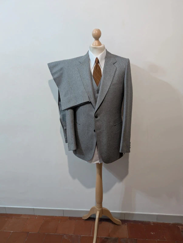 Prächtiger dreiteiliger grauer Wollflanellanzug