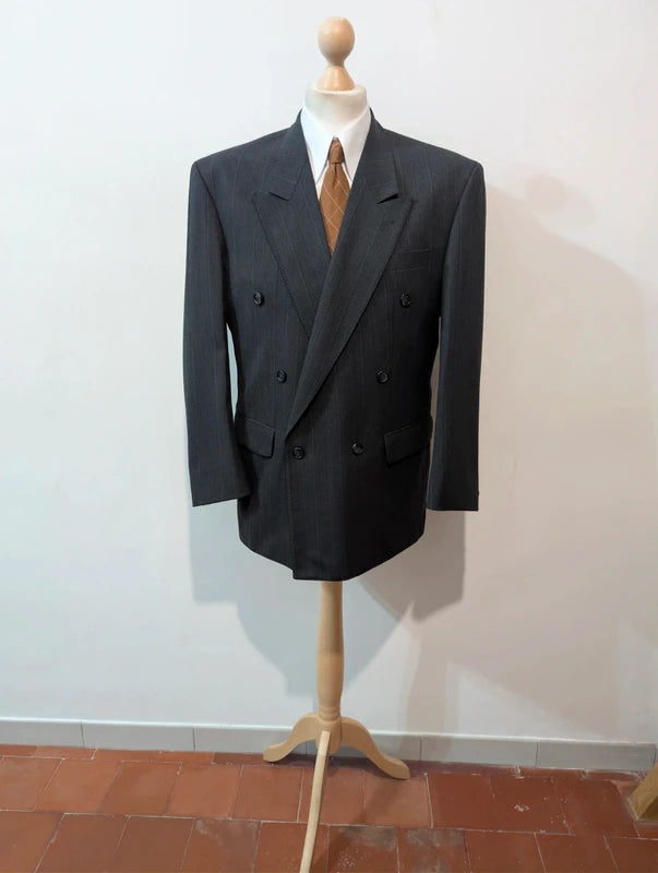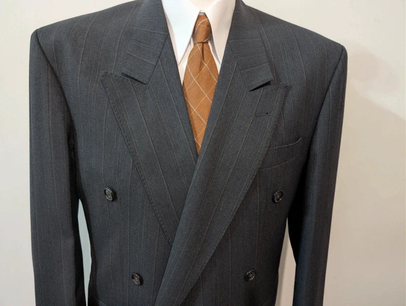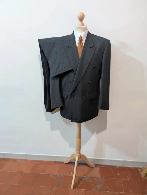 Prächtiger, zweireihiger, gestreifter Wollanzug