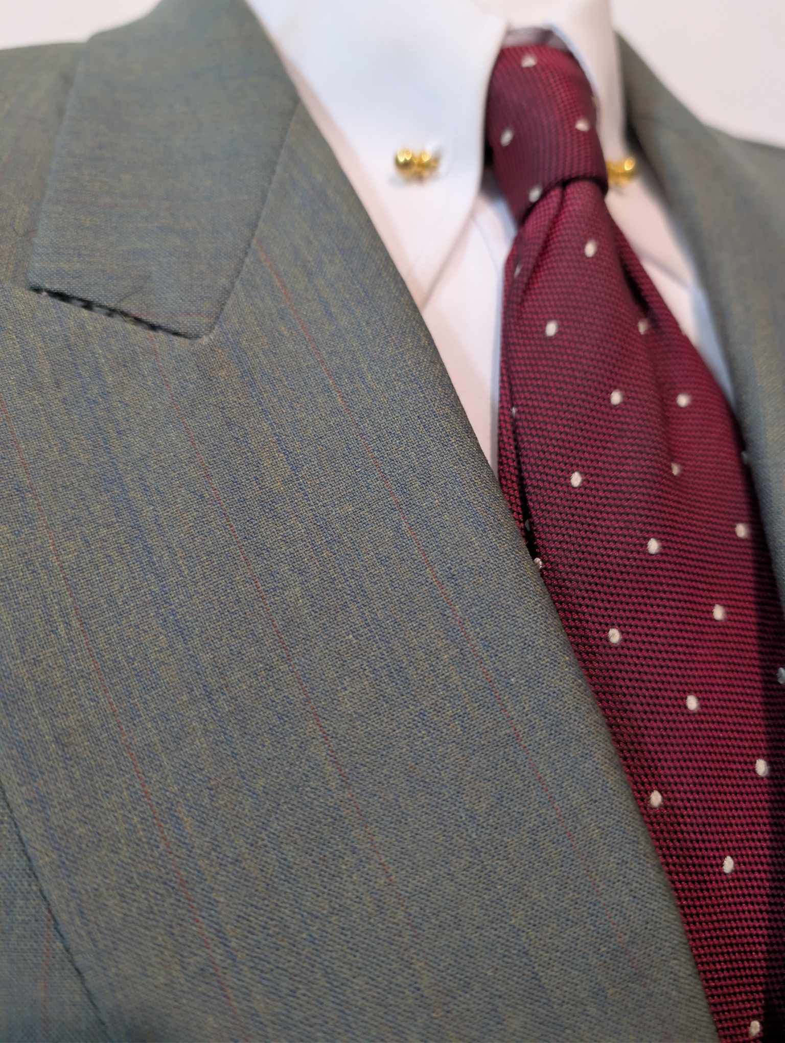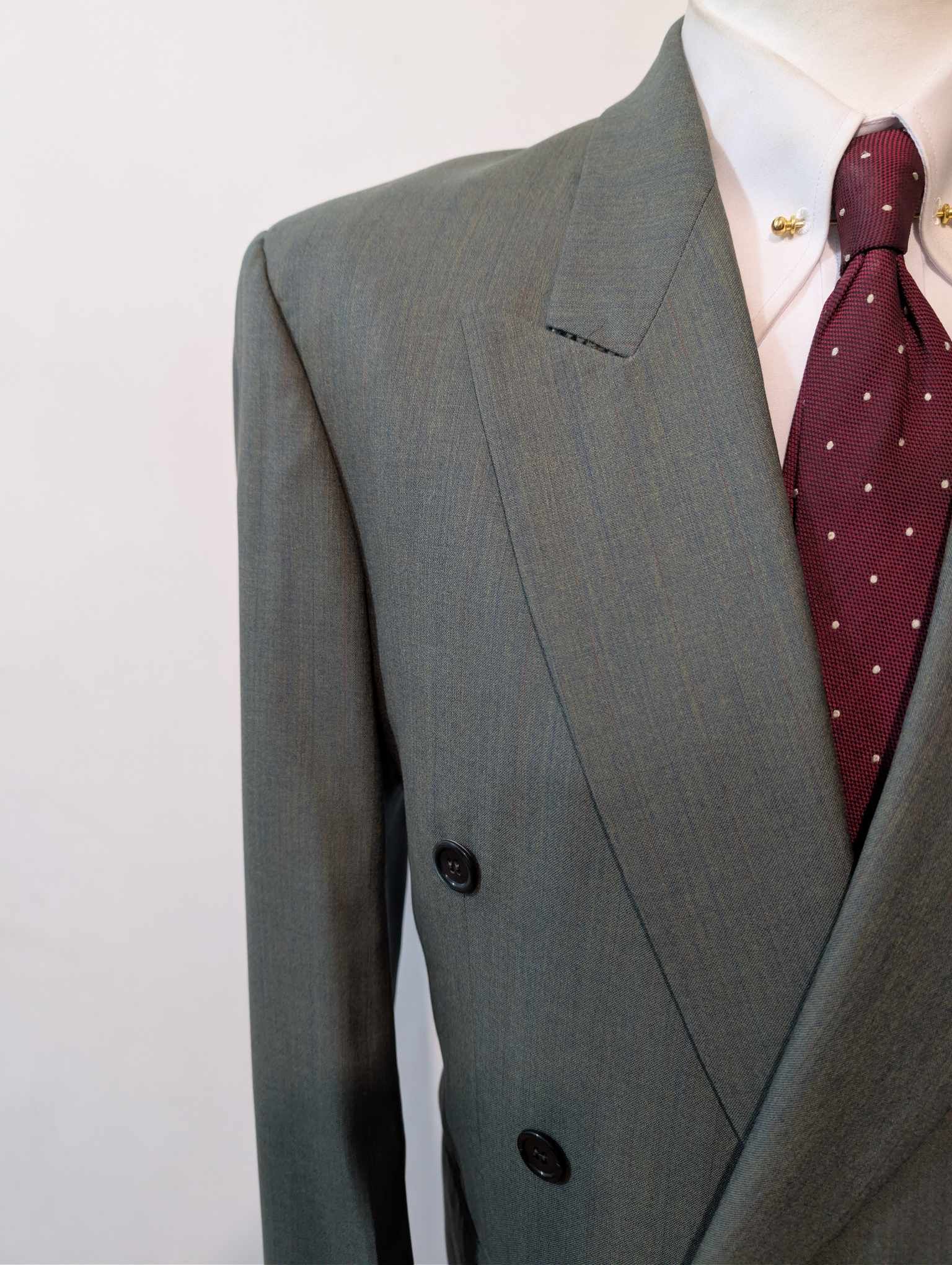 Je vous propose ce magnifique costume croisé de couleur vert en laine.