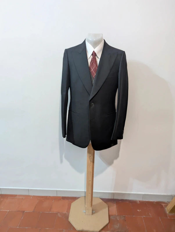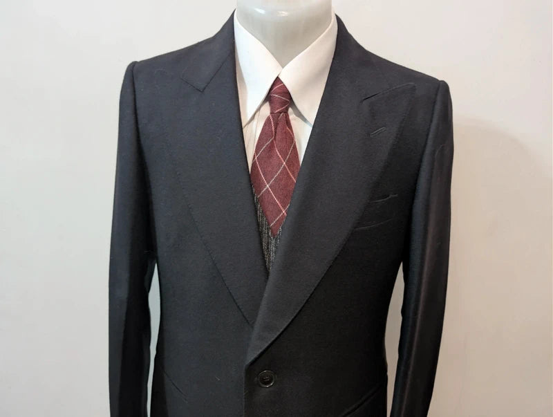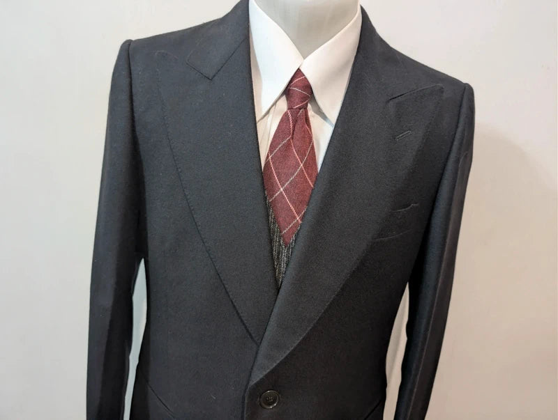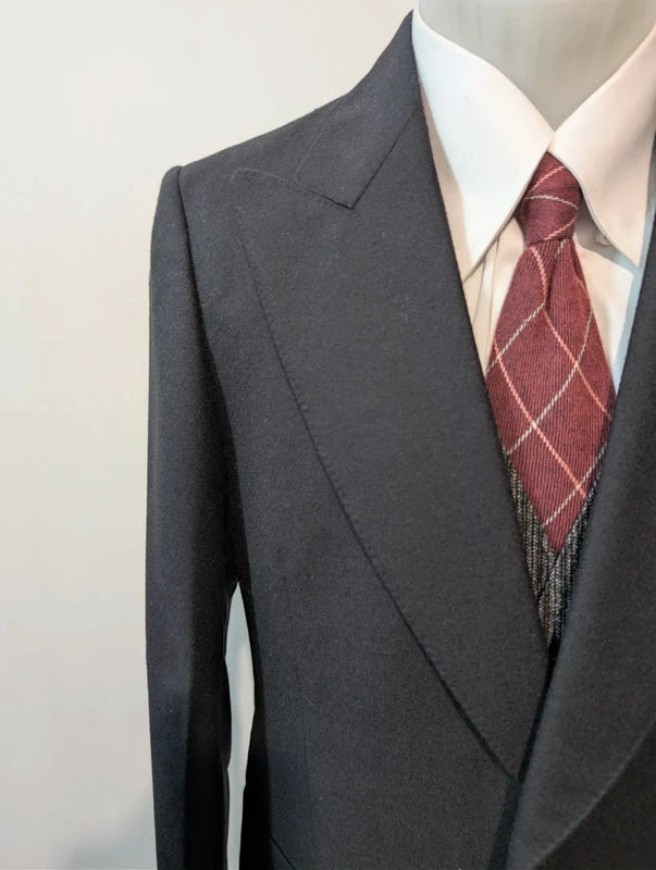 Es handelt sich um ein zweireihiges Sakko mit wunderschönen, spitz zulaufenden Revers.