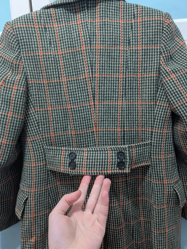 Ich biete Ihnen diesen kleinen grauen Tweedmantel mit Karomuster an.