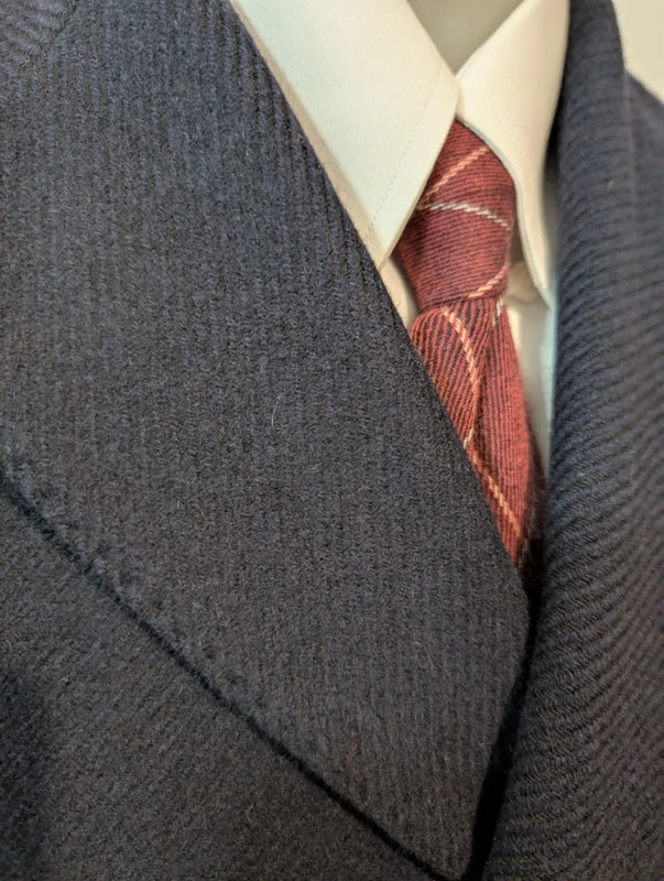 Der Mantel ist ein 6 x 2 zweireihiger Mantel mit wunderschönen spitz zulaufenden grünen Details.