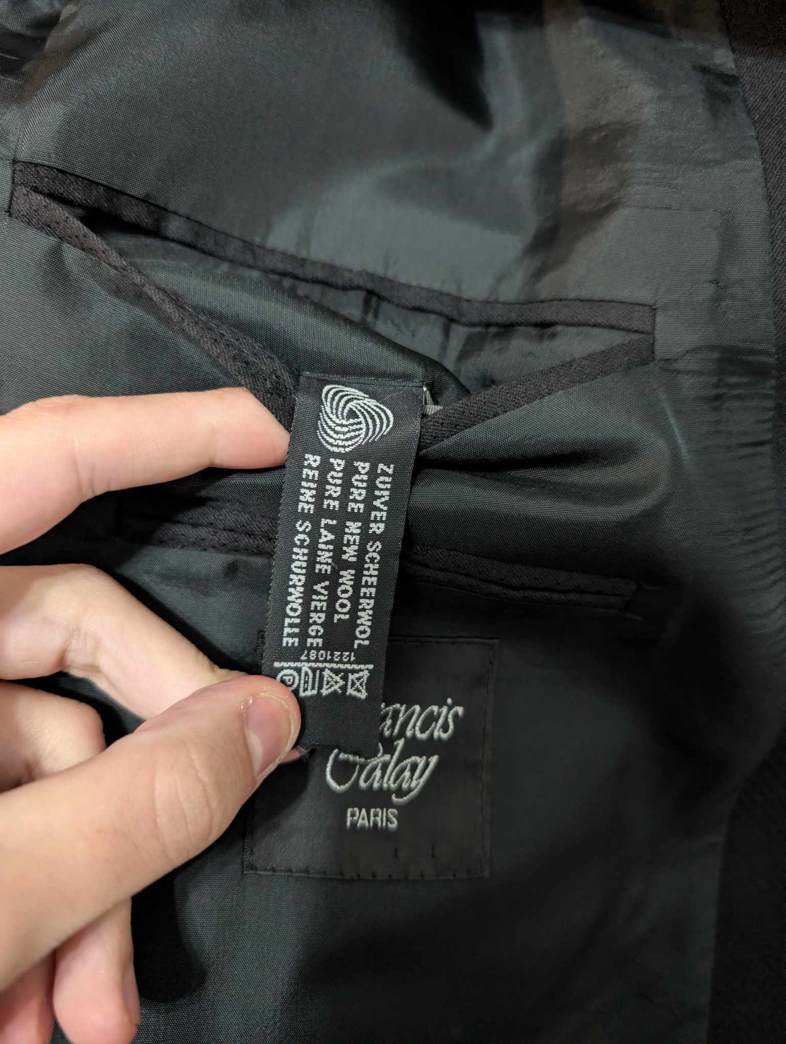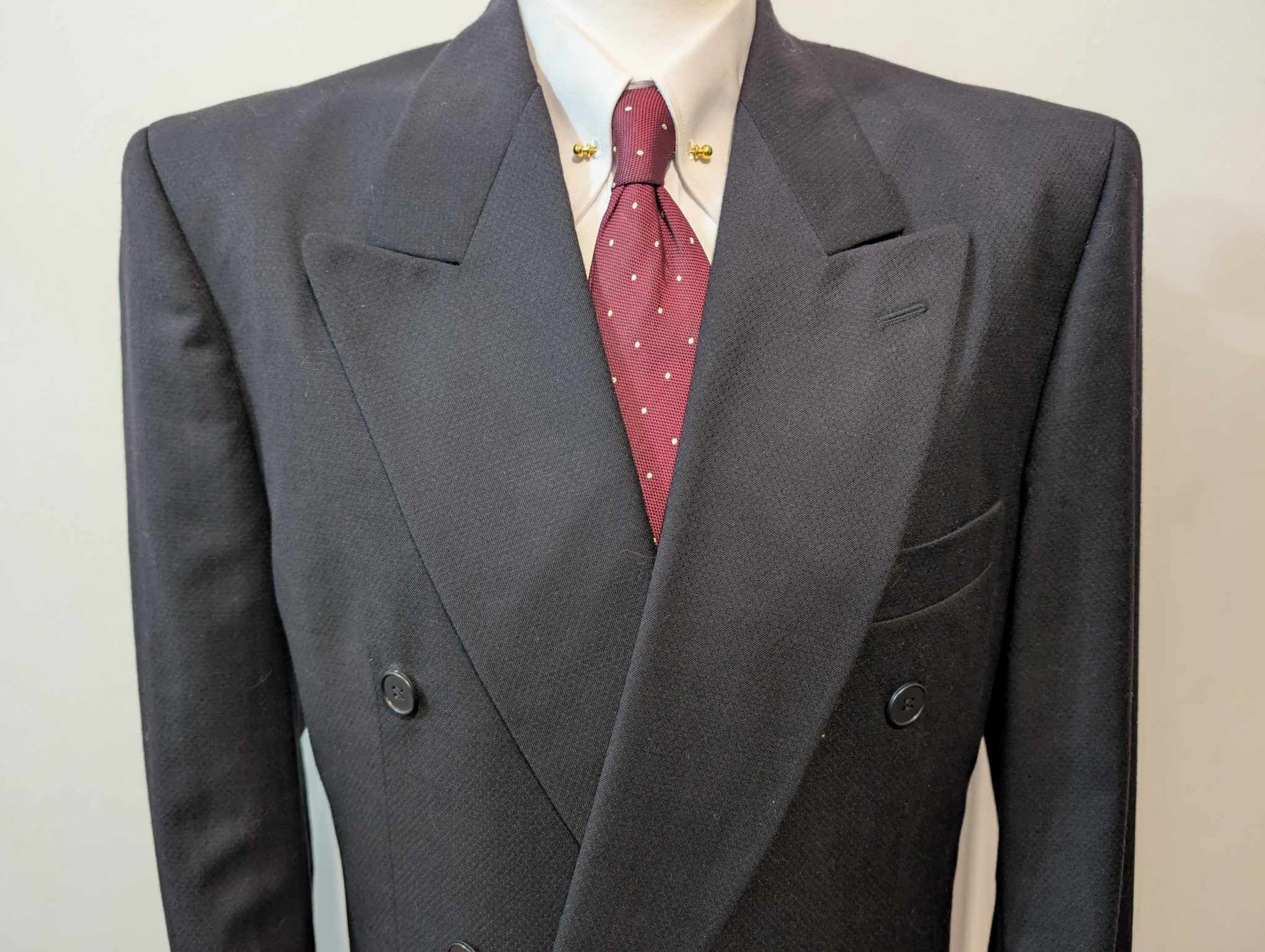 Je vous propose ce magnifique costume croisé noire en laine.