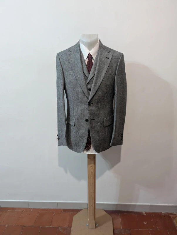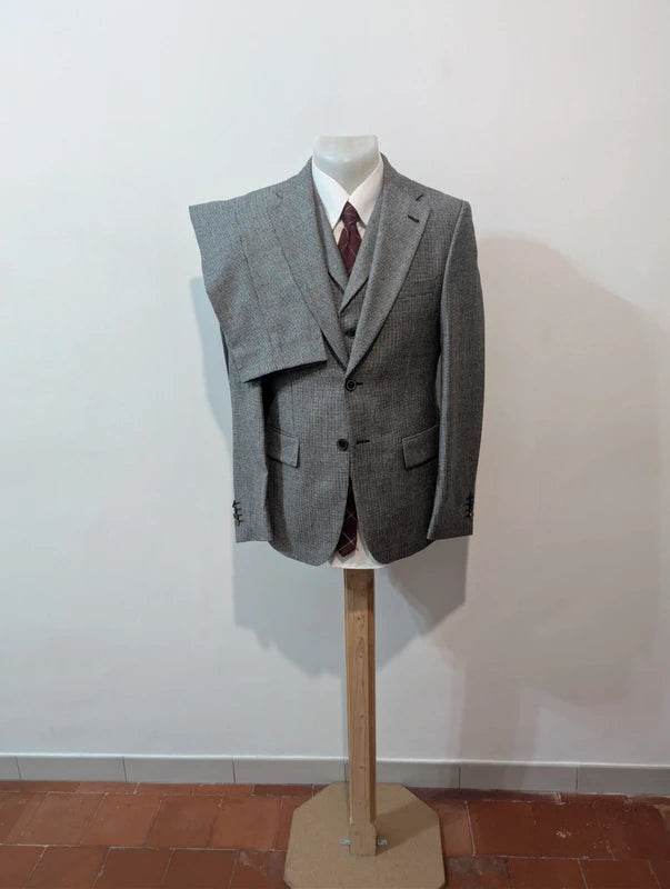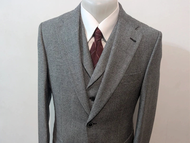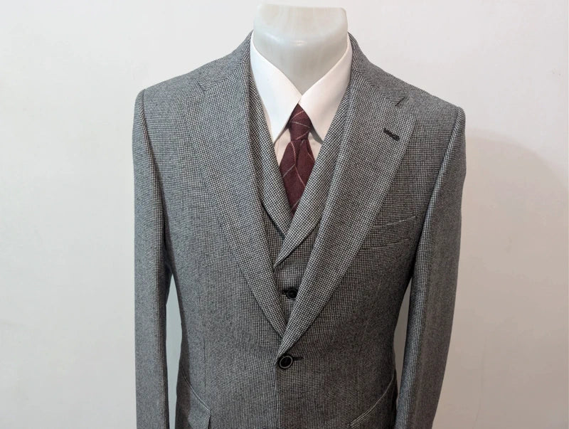Atemberaubender dreiteiliger grauer Hahnentrittanzug