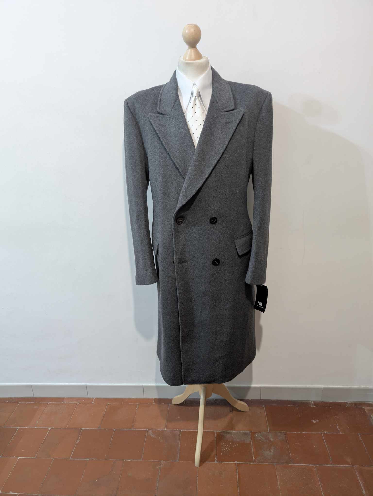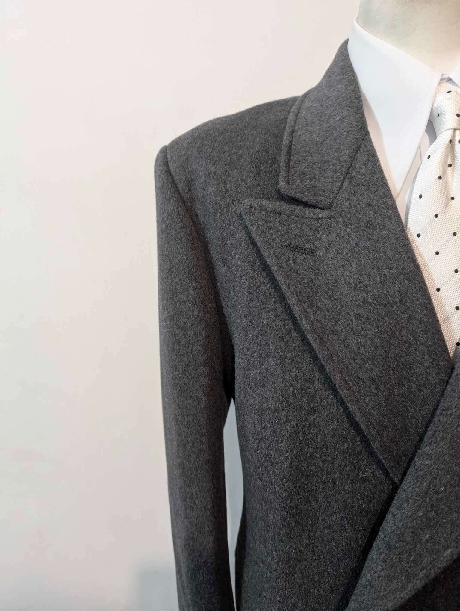 Der Mantel ist ein 6 x 2 zweireihiger Mantel mit wunderschönen spitzen Revers.