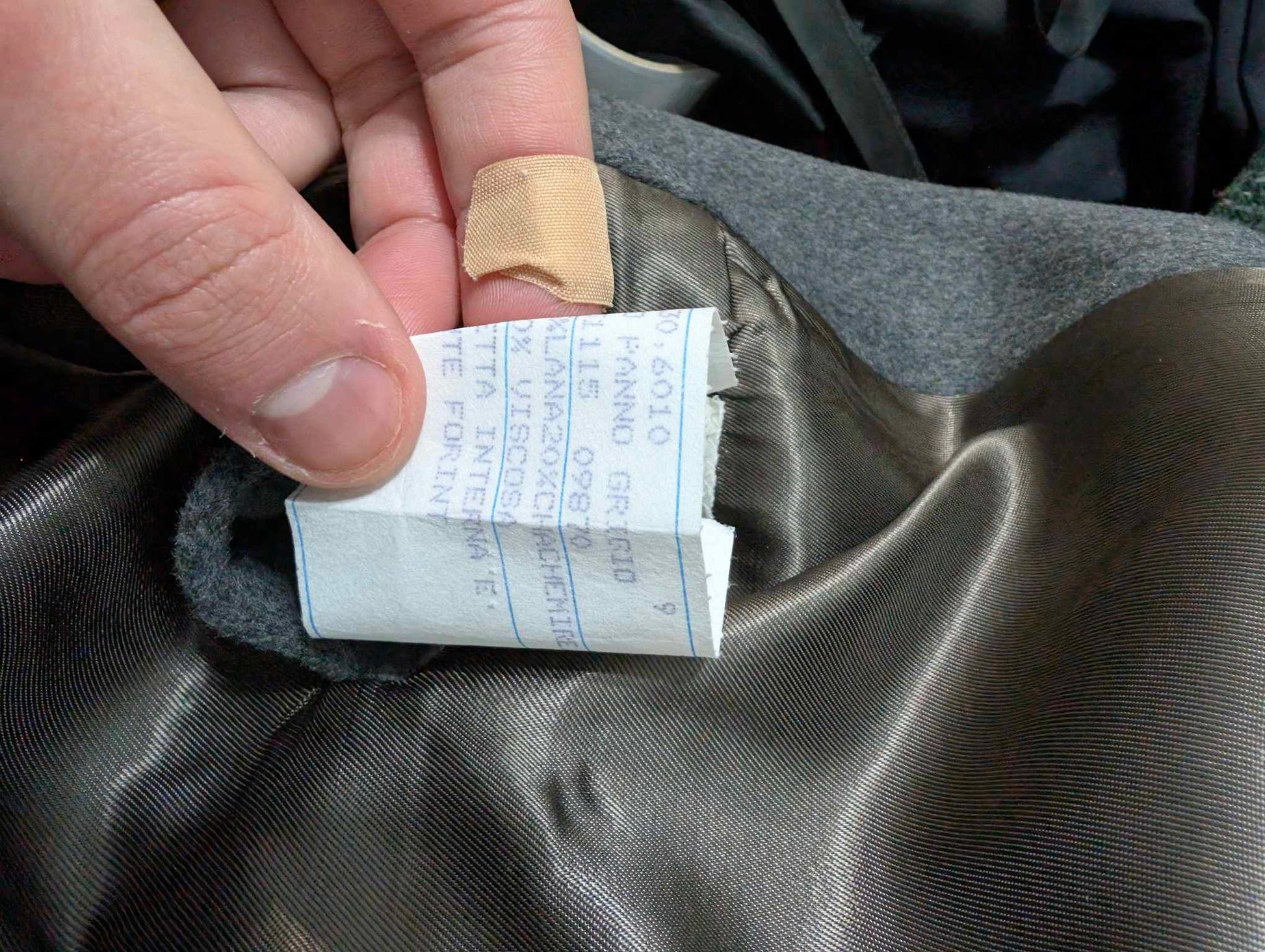 Der Stoff ist dick und schwer, ideal für Winter und Übergangszeit.