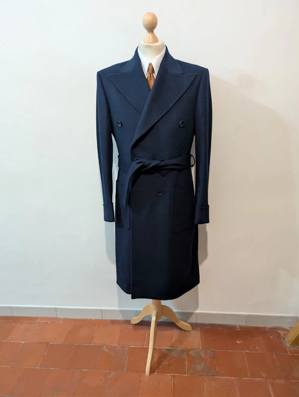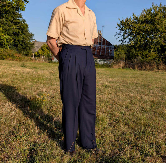 Navy Blue High Waisted Pants in Cold Wool (290gr)