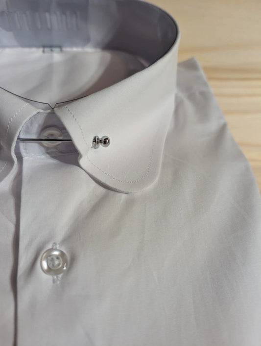 Round collar shirt with pin