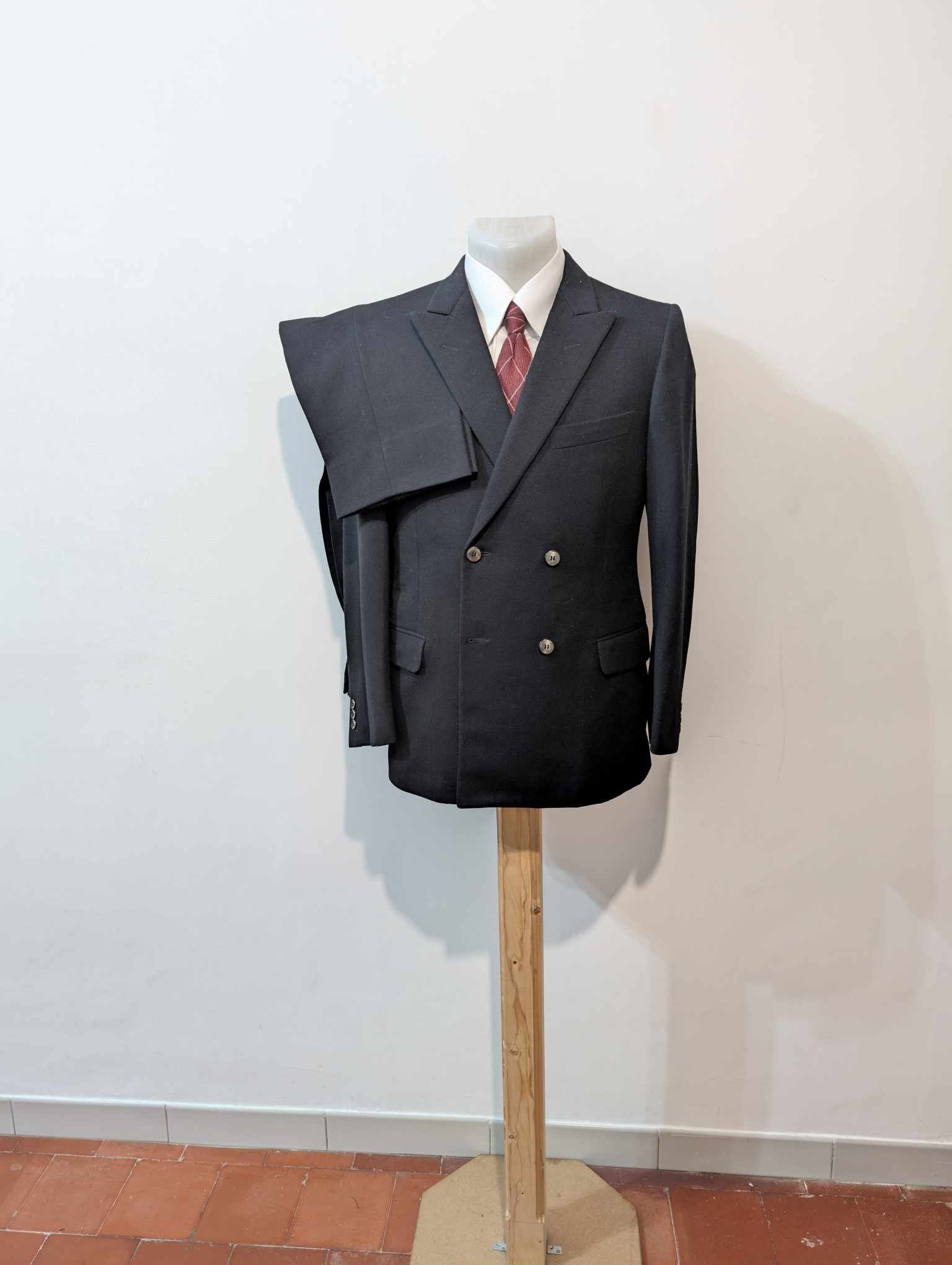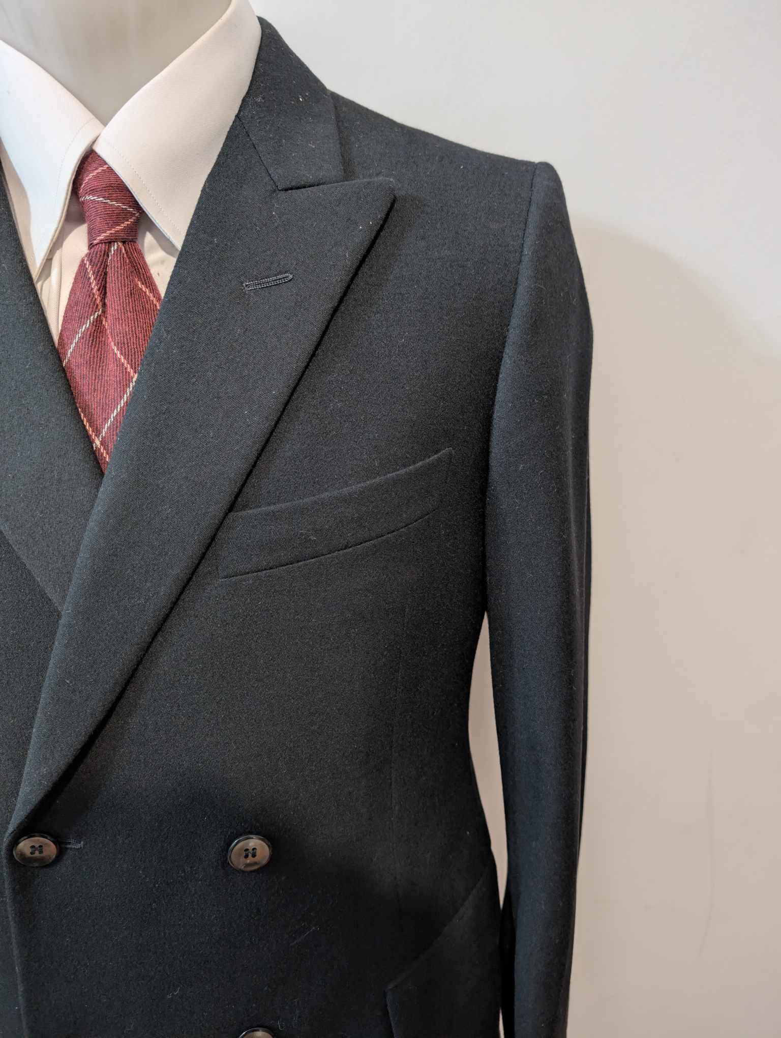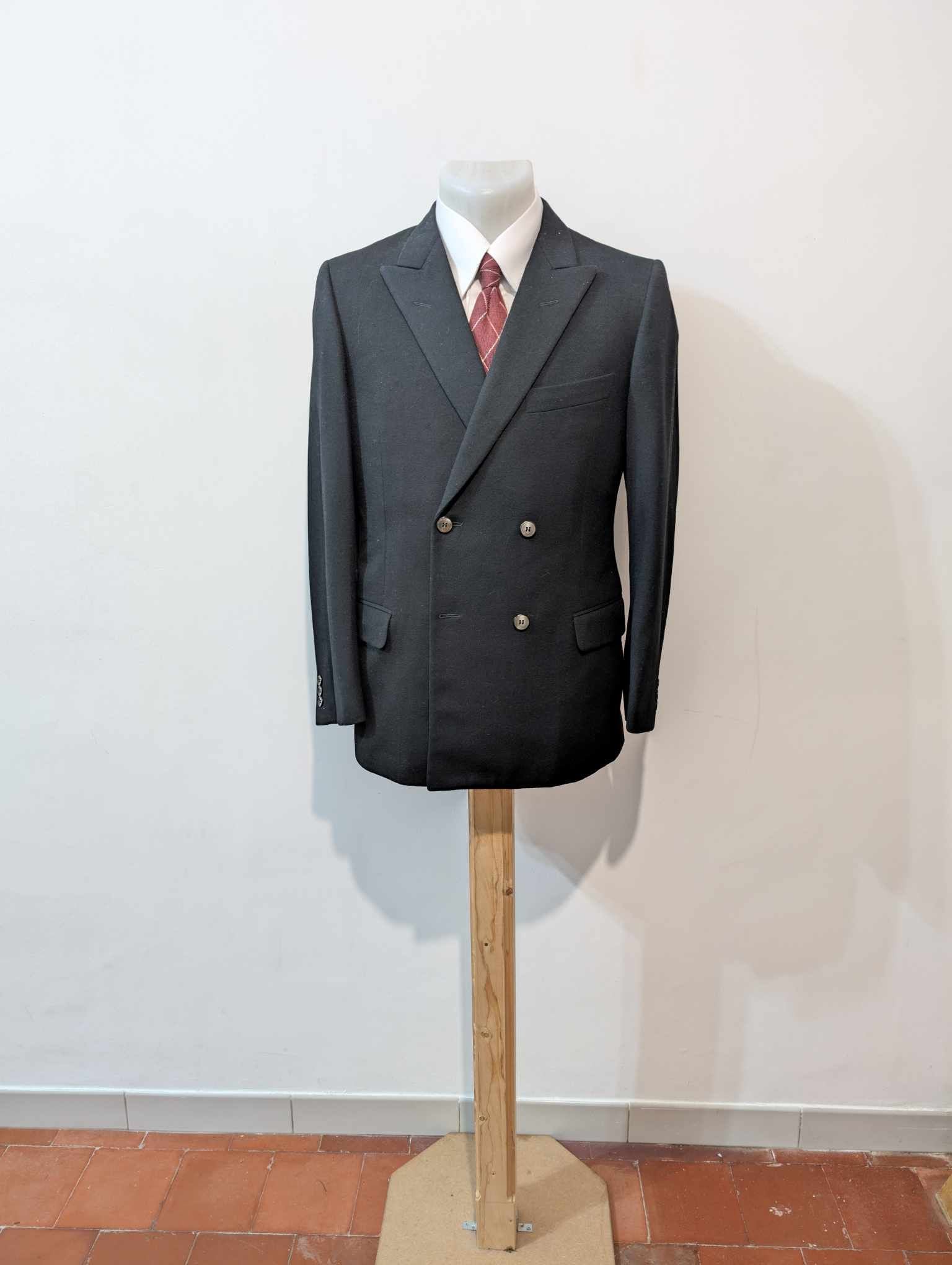 Je vous propose cet adorable Petit costume croisé de couleur noire en flanelle épaisse.