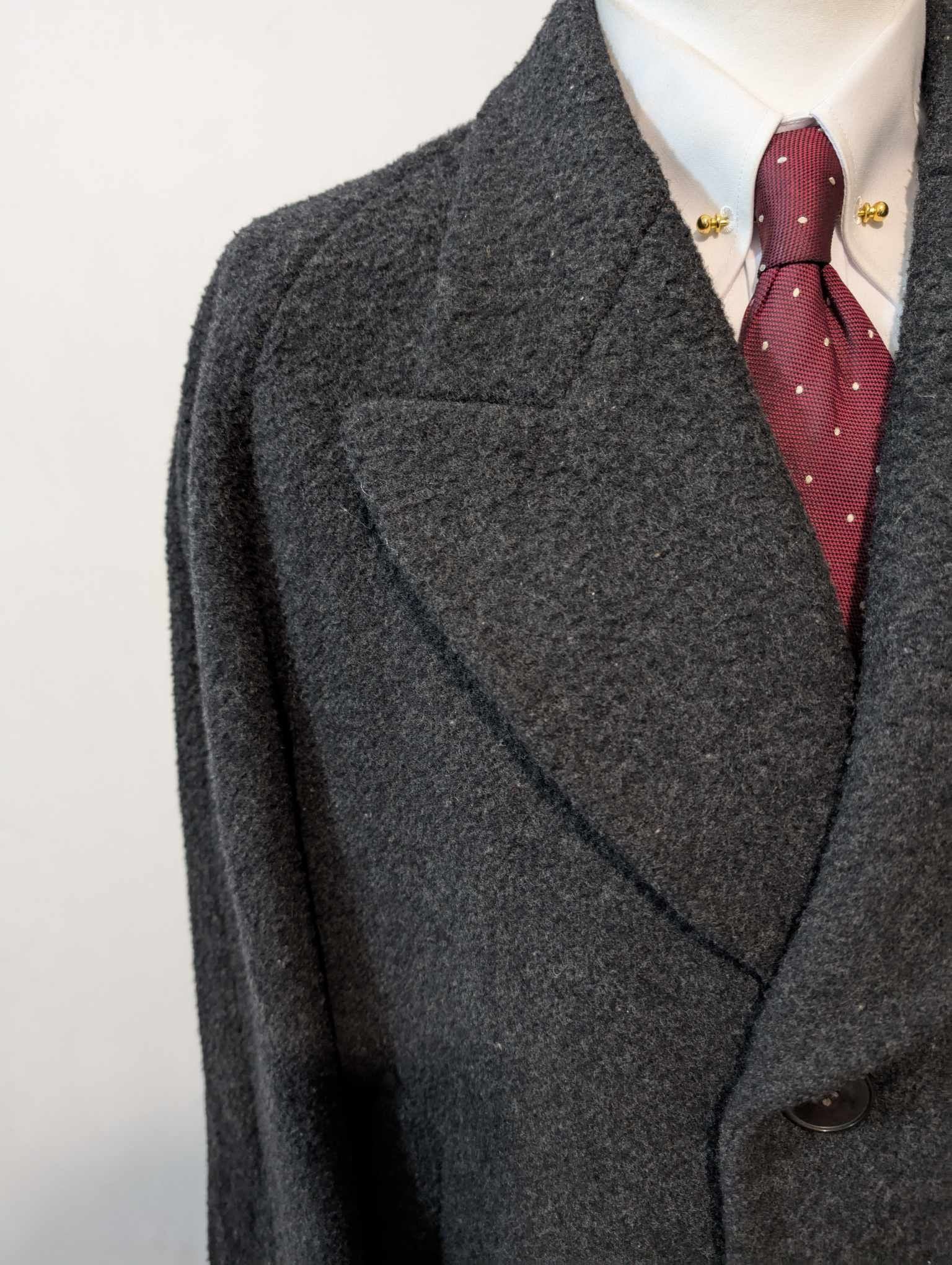 Je vous propose cet ancien manteau bespoke de couleur gris presque noir en laine lourde.