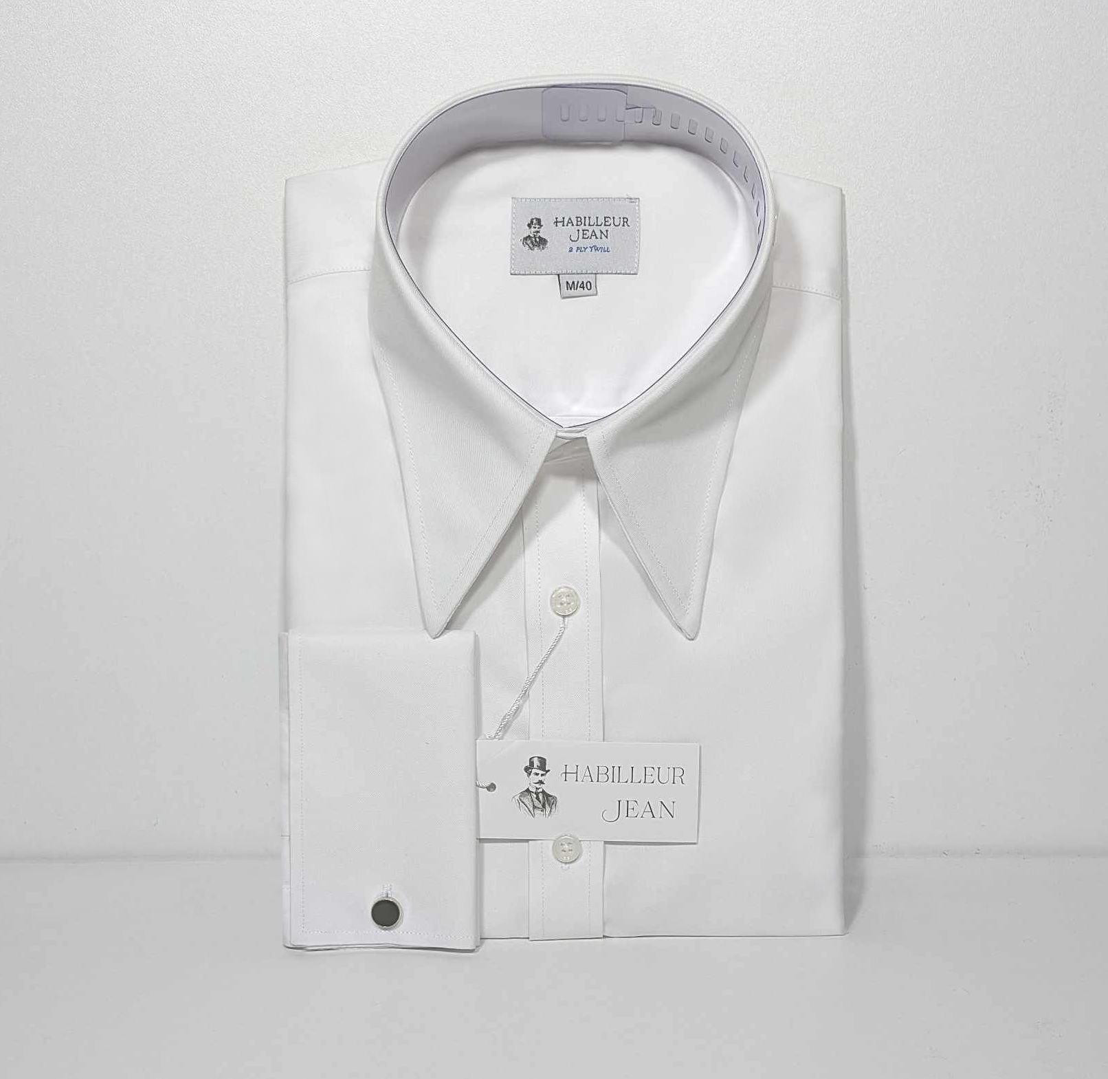 Chemise en col en pointe (10.5cm) en coton 2 ply (double retors) infroissable 100/2