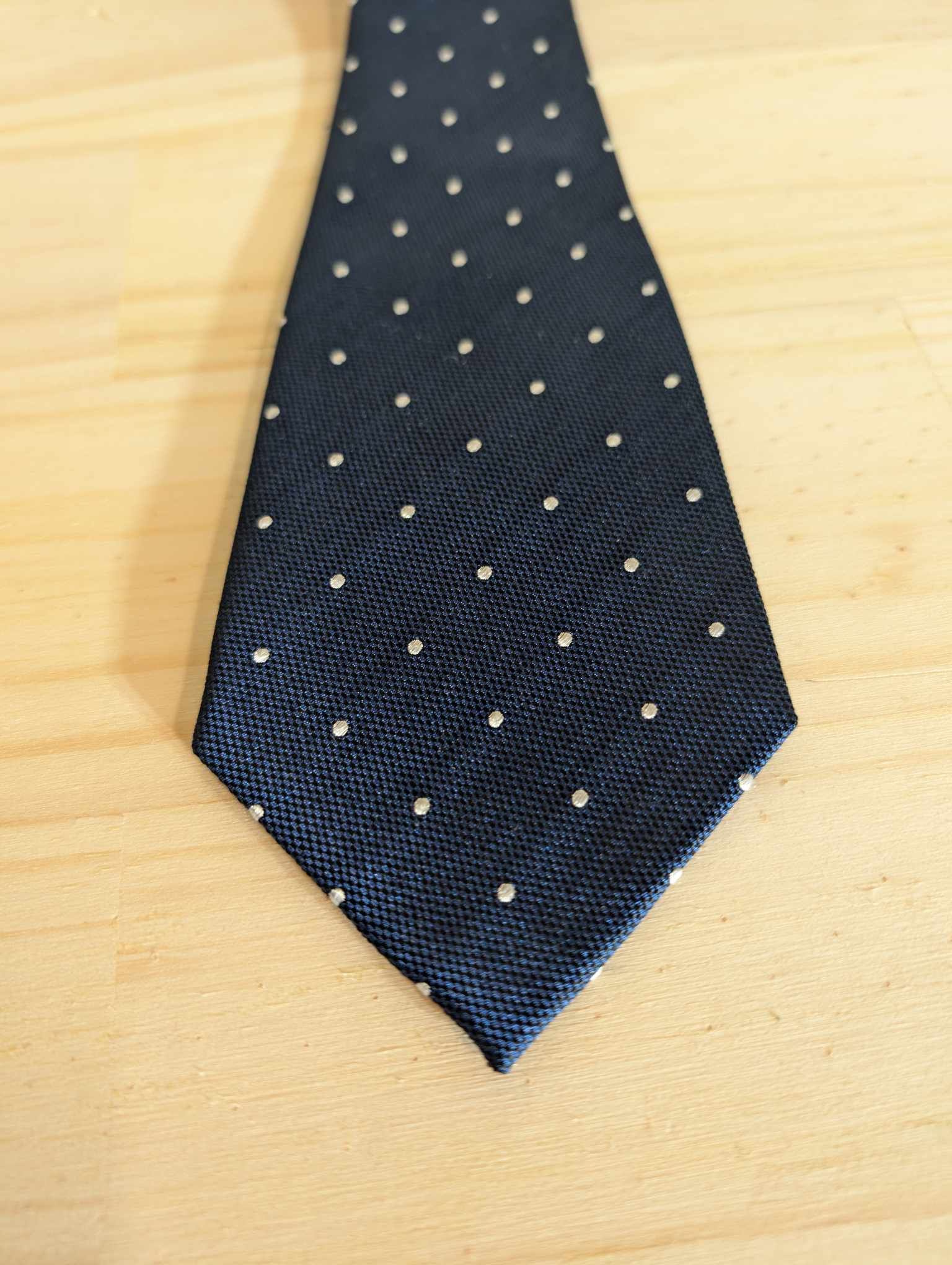 La cravate est plutôt courte pour s'adapter parfaitement à un pantalon taille haute.