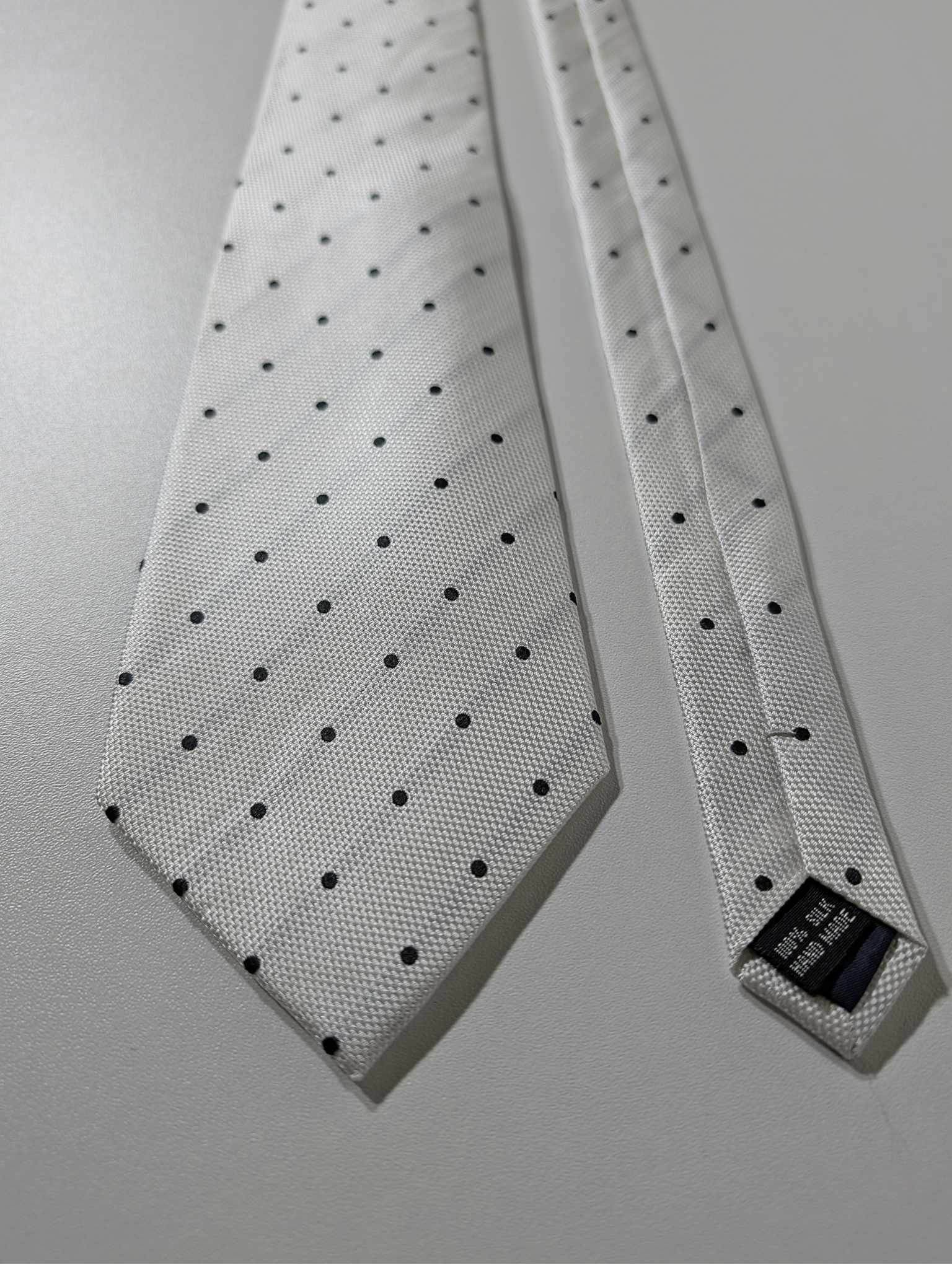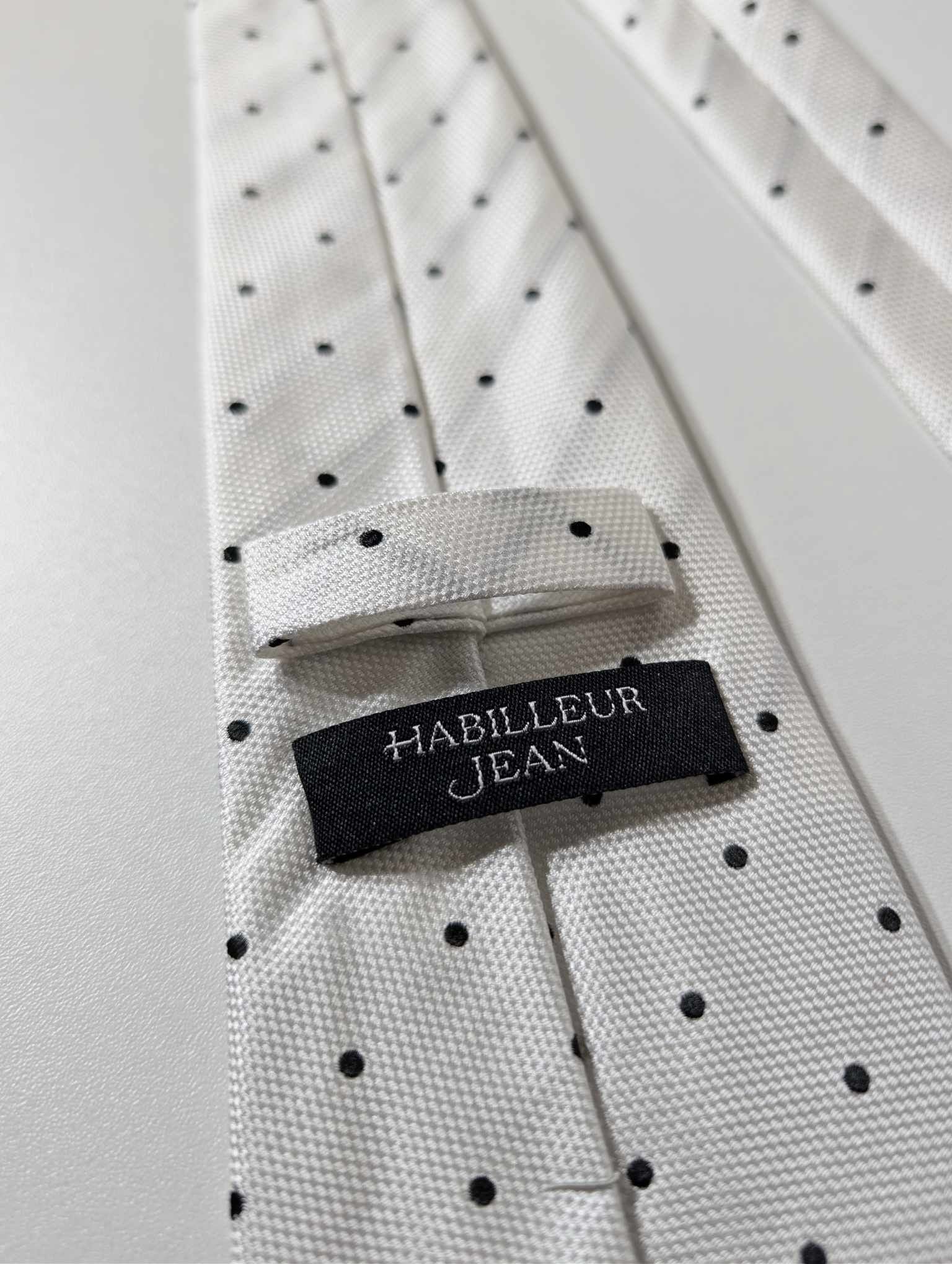 La cravate est plutôt courte pour s'adapter parfaitement à un pantalon taille haute.