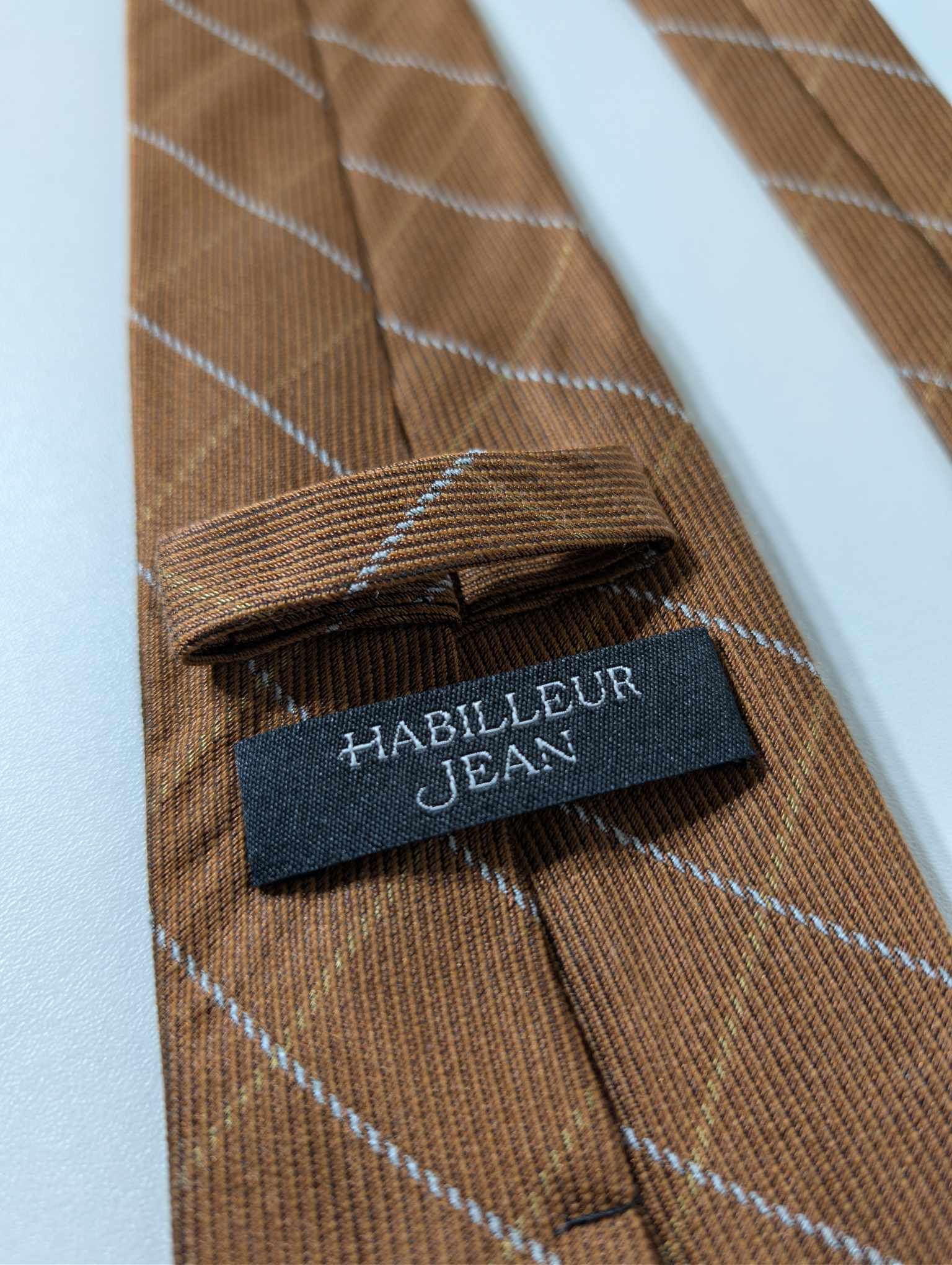 La cravate ne dépassera pas les passant de ceinture.