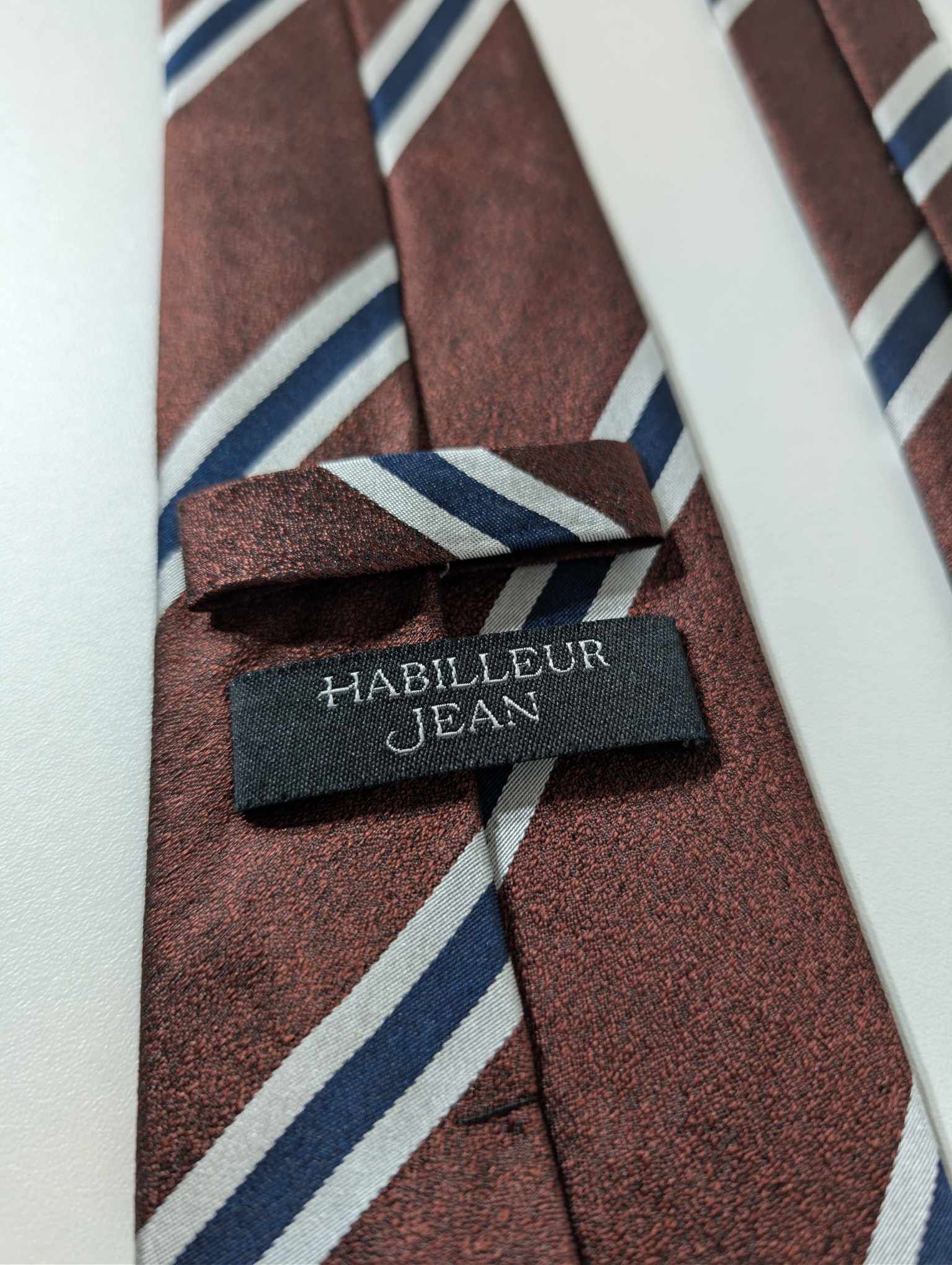 La cravate est plutôt courte pour s'adapter parfaitement à un pantalon taille haute.