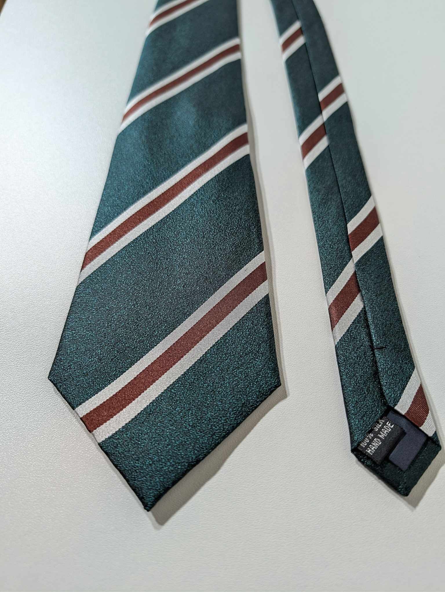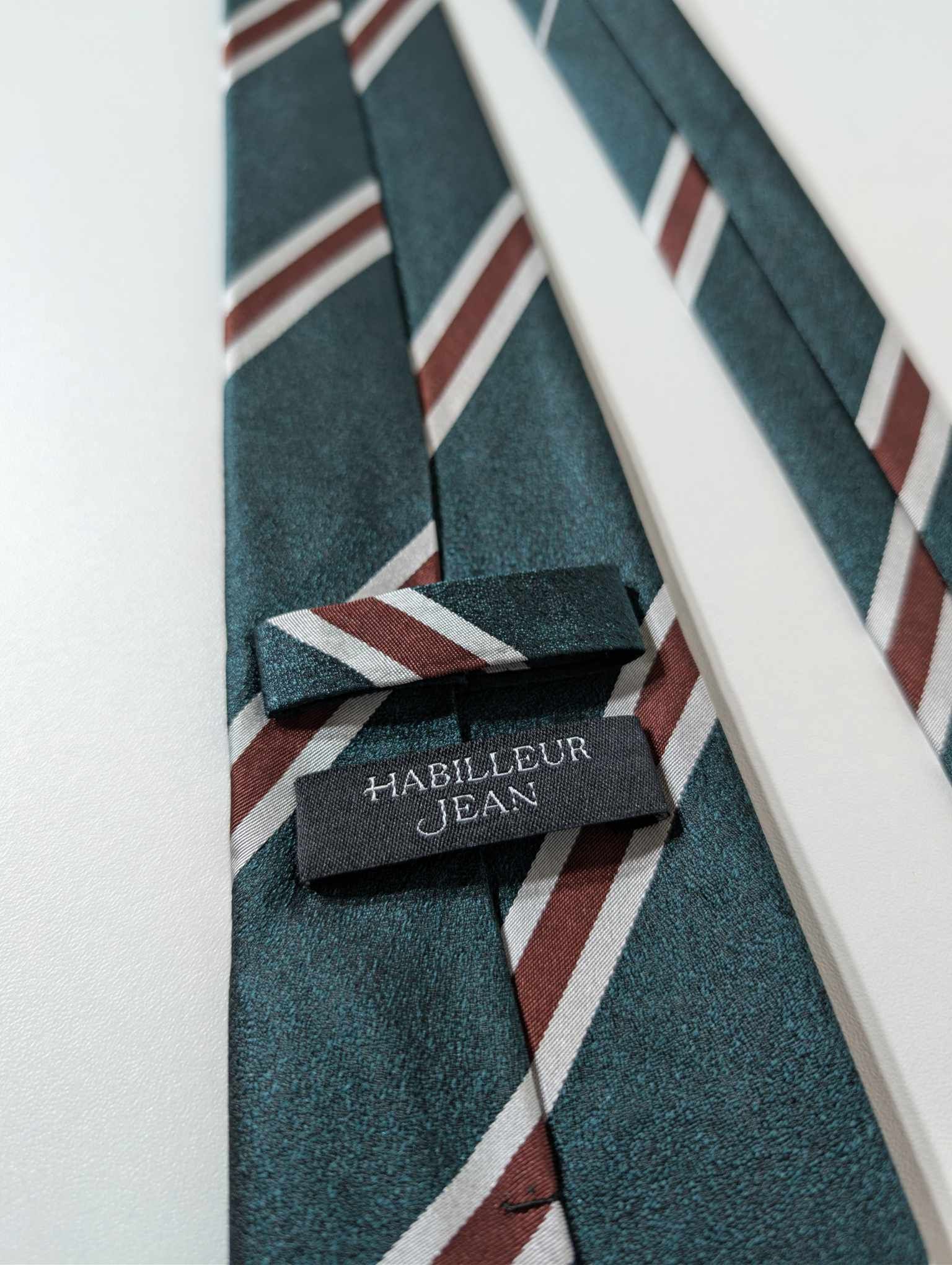 La cravate est plutôt courte pour s'adapter parfaitement à un pantalon taille haute.