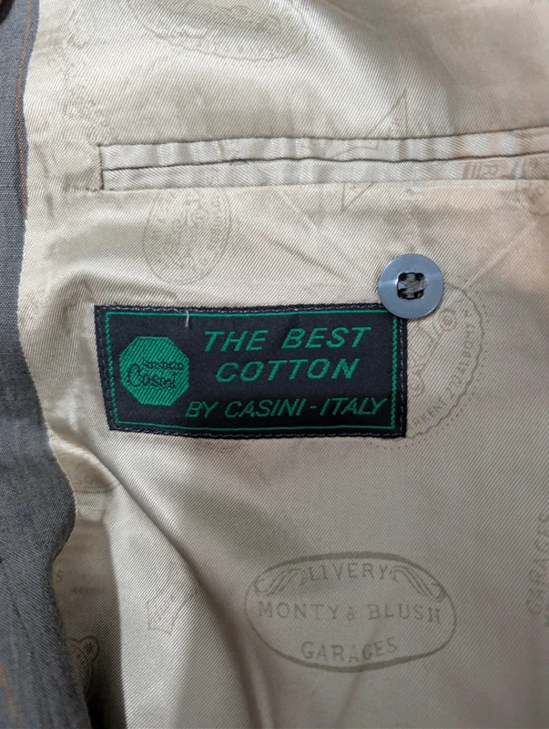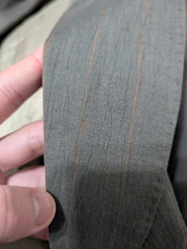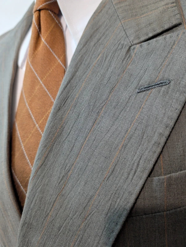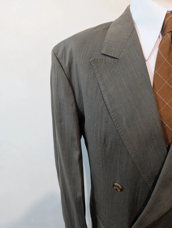 Je vous propose cet élégant costume croisé de couleur vert à rayures en coton.