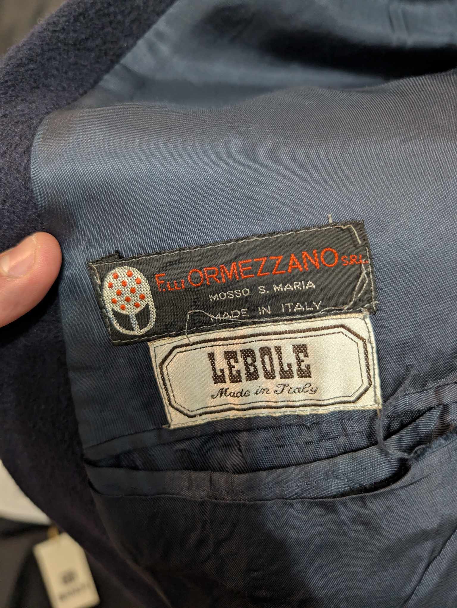 Le manteau est un manteau croisé 6 x 2 avec de magnifiques revers en pointe.