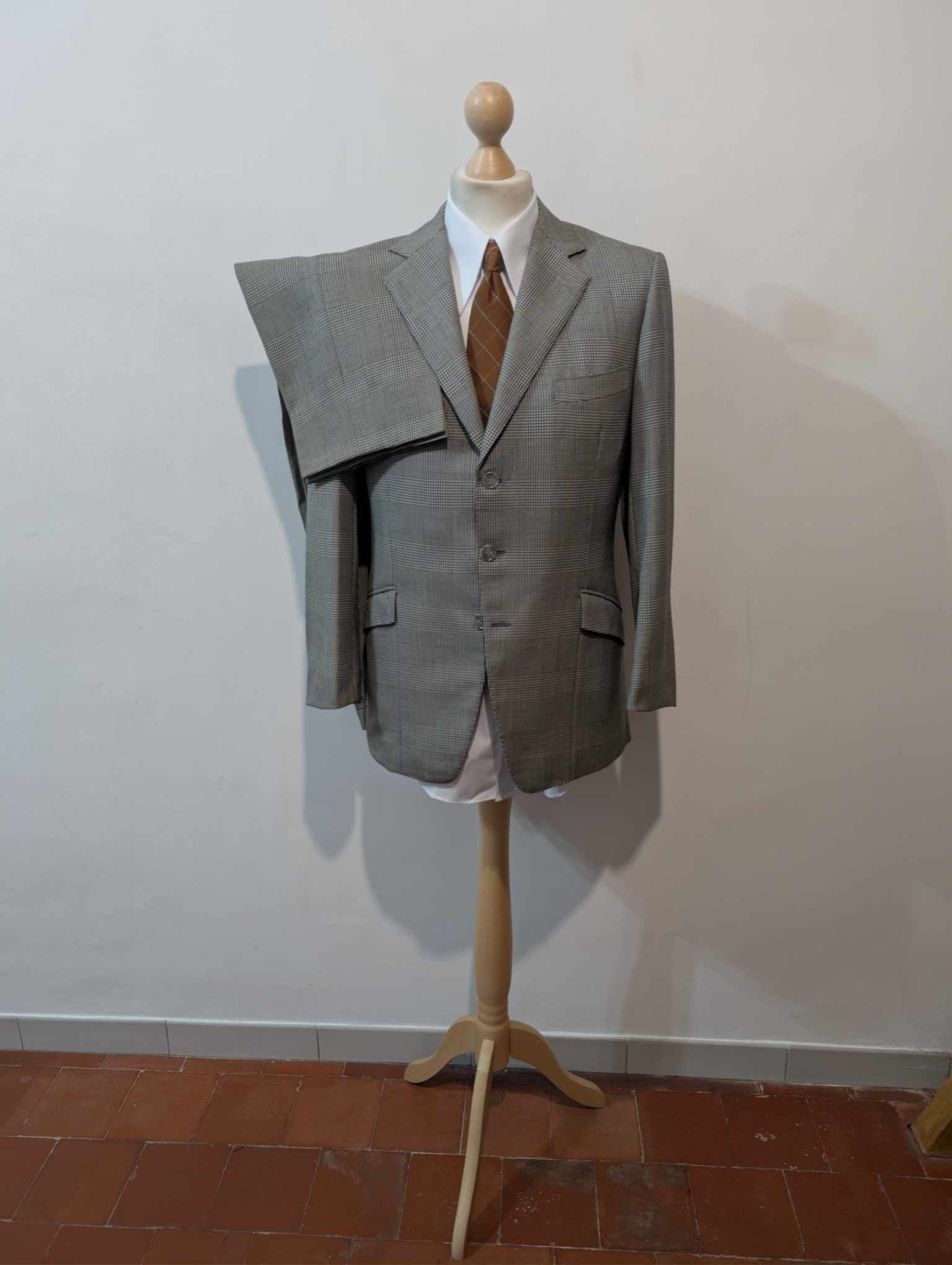 Je vous propose cet excellent costume bespoke français de couleur gris à motif prince de Galles en laine.