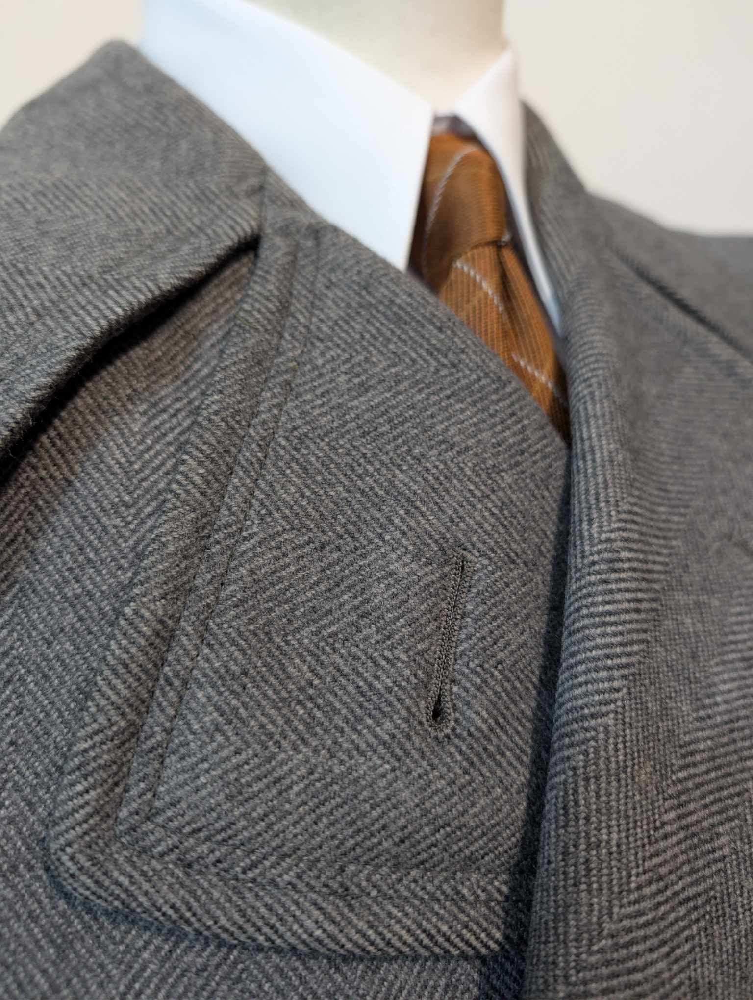 De plus, le manteau est entièrement entoilée pour une meilleure durabilité (entoilage complet, entoilage traditionnel)