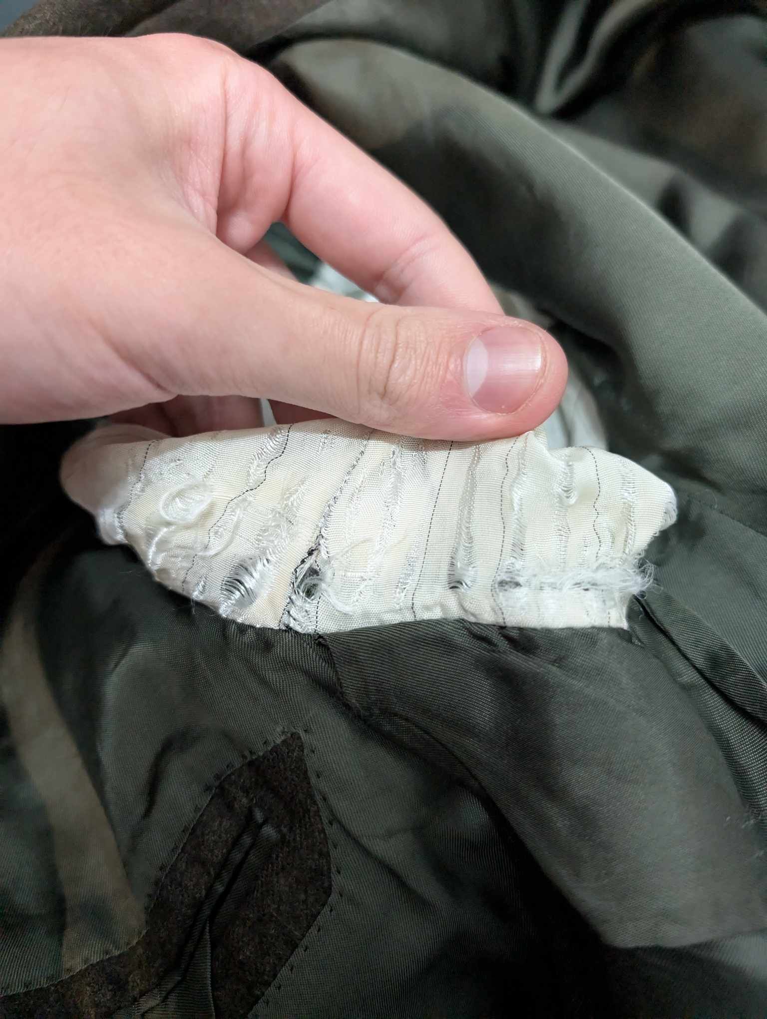 En très bon état, il y a seulement la doublure au niveau des aisselles qui possède quelques petites usures.