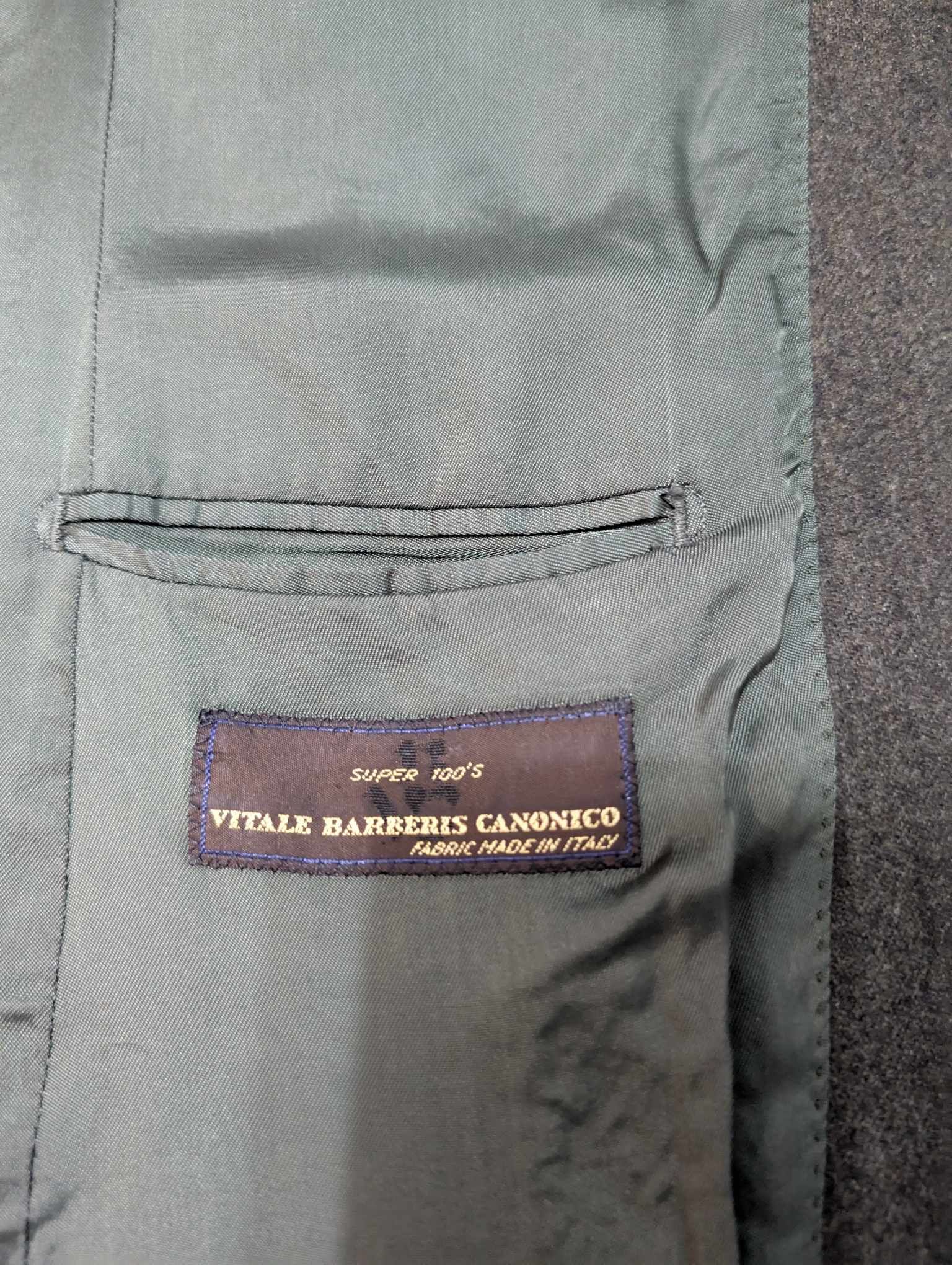 Je vous propose ce gentil costume de couleur gris vert en flanelle lourde de chez vitalet barberis canonico