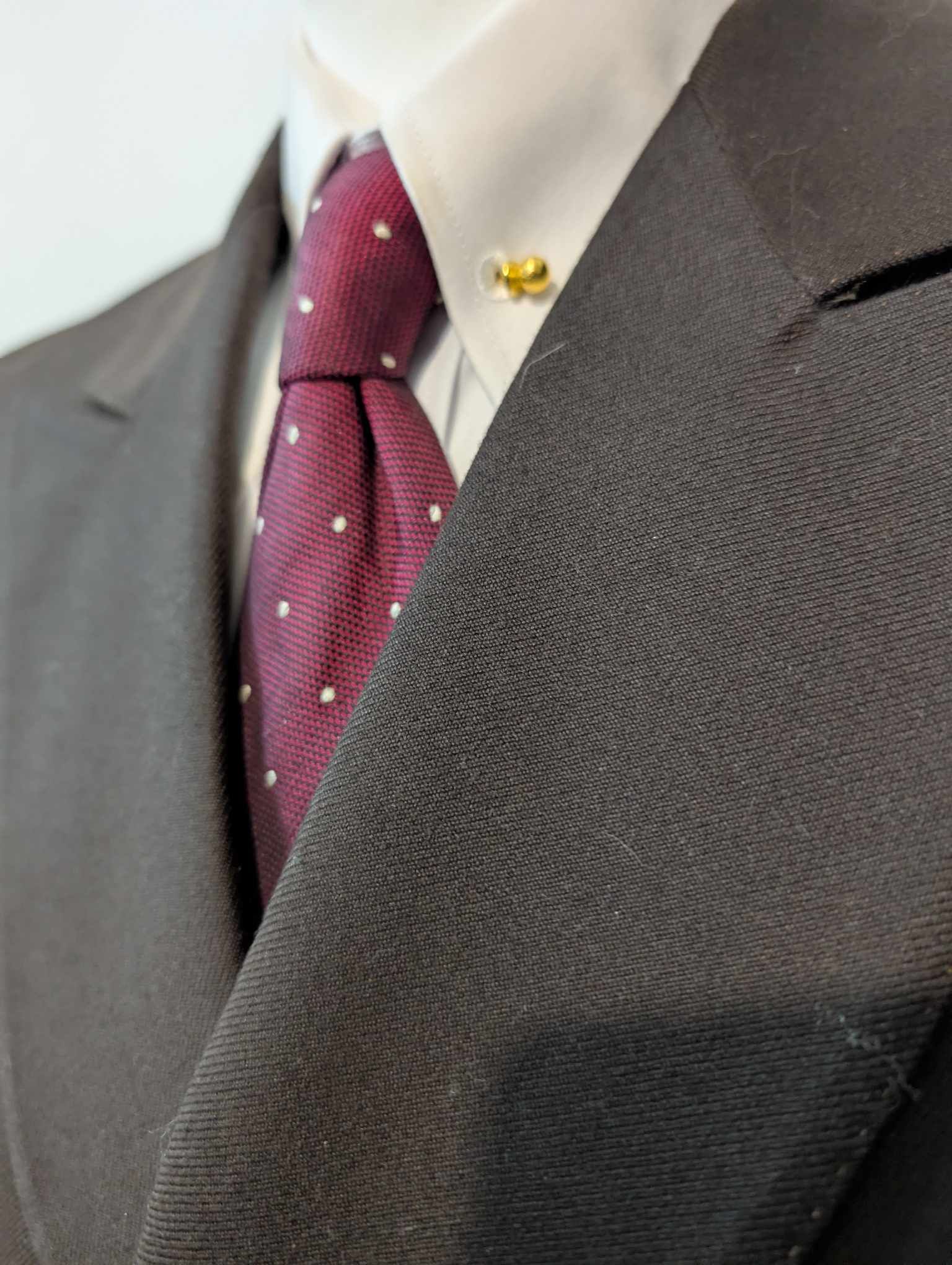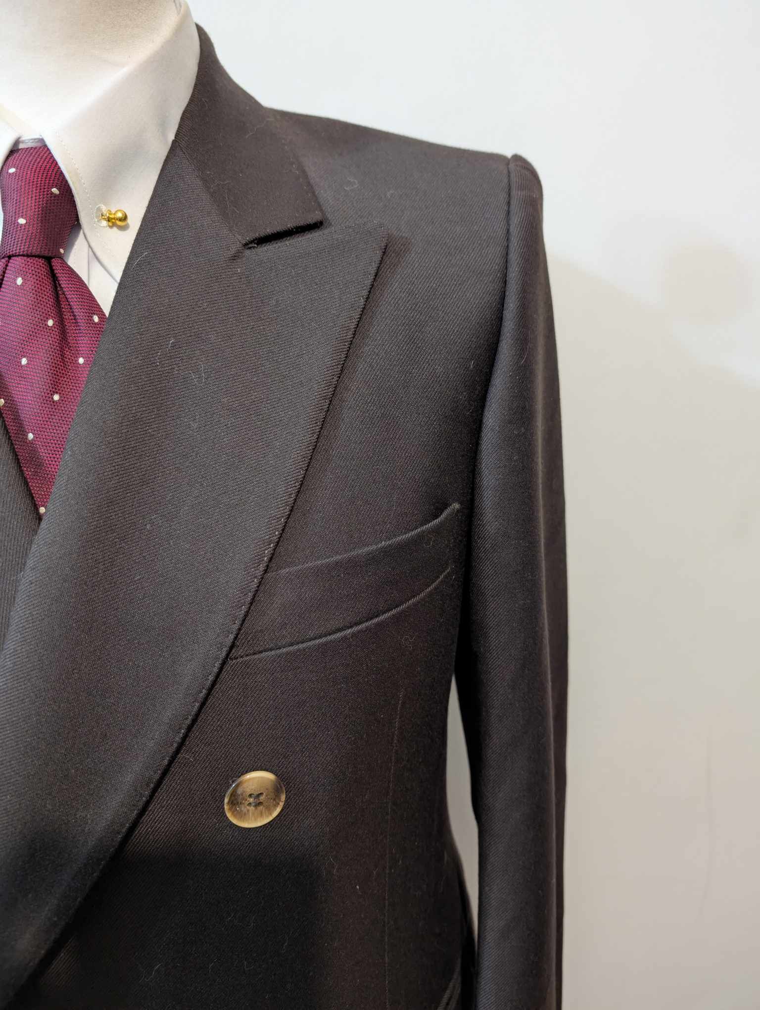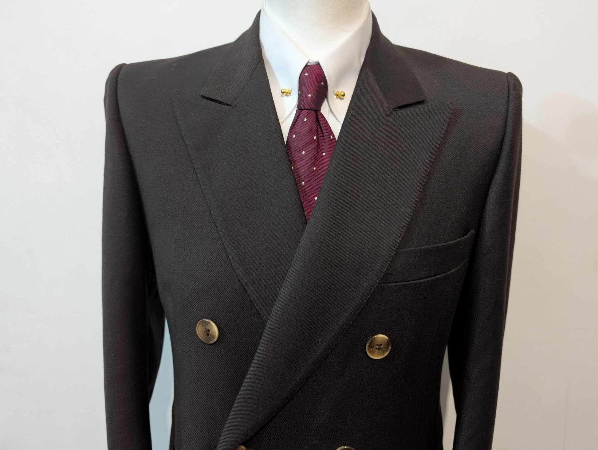 La veste est une veste croisée 6 x 2 avec de magnifiques revers en pointes.