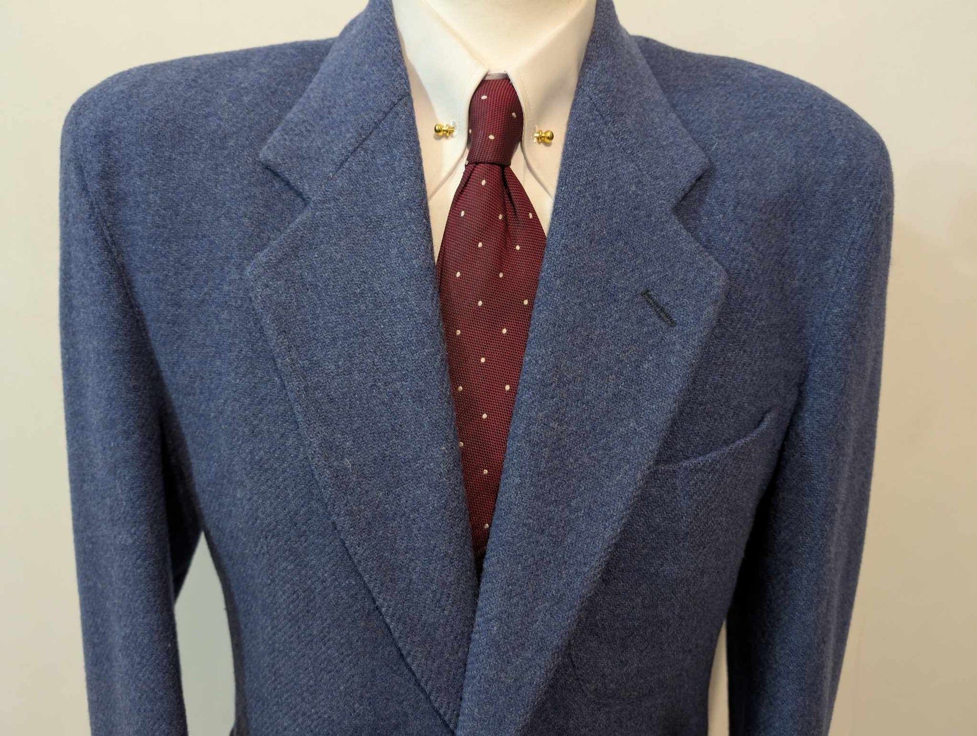 La veste est une veste de deux boutons avec de charmant revers à cran.